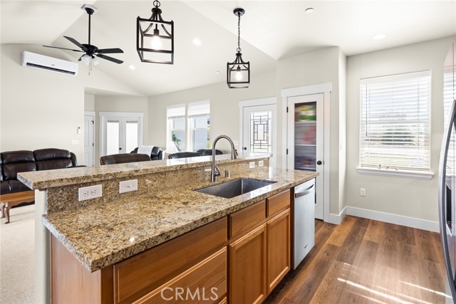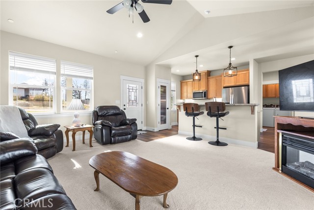 Welcome to this beautifully maintained, nearly new home built in July 2025, located in the charming town of Paradise. Ideally situated, this property offers quick access to Raley’s shopping center in Chico—just a 15-minute drive—and is only minutes from the picturesque Billie Park. Step inside to an inviting open floor plan where the living room seamlessly flows into the dining area and kitchen. The kitchen features granite countertops, an eating bar, pantry, refrigerator, electric stove/oven, and dishwasher—perfect for both everyday living and entertaining. Both bathrooms also showcase matching granite countertops for a cohesive, upscale feel. This home is truly move-in ready, equipped with all-electric appliances, indoor laundry with washer and dryer included, and efficient mini-split systems for heating and cooling. Additional upgrades include fully owned solar, a fire sprinkler system, and a beautifully landscaped yard complete with an automatic sprinkler system on a timer. The property is on ( PID ) Paradise irrigation district water and is on septic. The property also offers a 2-car garage with automatic opener and convenient RV parking. And as a delightful bonus, the owners are occasionally visited by adorable fawns and their parents, adding to the peaceful, natural setting. A wonderful opportunity to own a lightly lived-in, modern home in a serene location—don’t miss it!