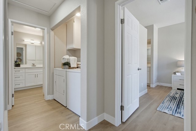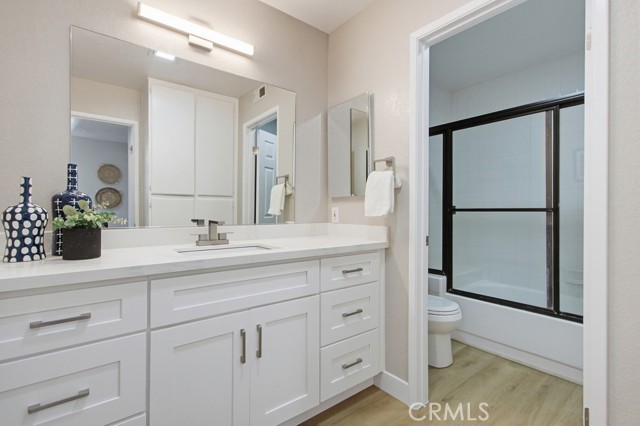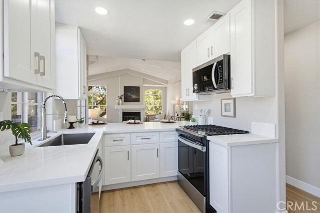 Beautifully Remodeled Home in Gated Community with Pool & Mountain Views! Welcome to this completely renovated 2-bedroom, 2-bath upper-level condo with high vaulted ceilings in the sought-after Rancho Del Oro neighborhood of Oceanside. Featuring 1,008 sq ft of modern living space, this home has been upgraded from top to bottom with new flooring, fresh paint, a brand-new kitchen, with new appliances, and fully remodeled bathrooms—Basically a new home! Enjoy bright, open living spaces and a private balcony with sweeping views of the pool and distant mountains, perfect for relaxing or entertaining. The well-designed floor plan offers two spacious bedrooms, including a master suite with a walk in closet, en suite bathroom, and french doors opening to its own private patio overlooking the pool and mountains. This unit includes ample storage, in-unit laundry, a one-car garage plus one additional parking space providing rare convenience for the area. The community offers secure gated entry, a sparkling pool, spa, and walkable paths. Located just minutes from the beach, downtown Carlsbad, shopping, dining, parks, and easy freeway access, this home combines comfort, style, and a fantastic location. Don’t miss this turnkey opportunity in Oceanside!