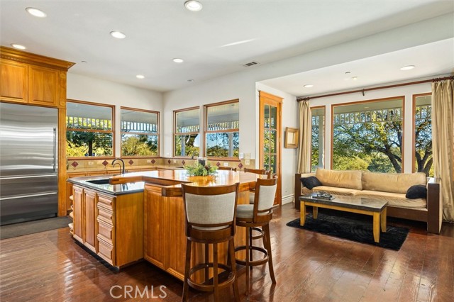 Surrounded by a park-like landscape of 121 mature oak trees, this exceptional 3,467 sq. ft. Australian Queenslander-style residence sits on more than nine stunning acres overlooking the Santa Lucia Mountains, rolling hills, and Paso Robles wine country. Offering rare privacy while remaining just 3.5 miles from downtown Paso Robles, minutes from the 101 freeway, and 25 minutes from the beaches, the estate delivers a lifestyle that feels real, grounded, and deeply connected to the land—perfect for morning coffee on the veranda, exploring the property, or envisioning space for horses and future outdoor uses. A circular driveway framed by towering oaks and a custom fountain creates a memorable arrival, leading to approximately 2,300 sq. ft. of covered veranda ideally positioned for watching breathtaking sunrises and unforgettable sunsets. Inside, the home features repurposed wood flooring, 8-inch baseboards, and 10-foot ceilings, creating a warm, refined atmosphere filled with natural light and authentic character. The grand living room opens through three sets of paned glass doors to peaceful oak-filled views. while a spectacular 2,500-bottle walnut wine room and adjacent study elevate both entertaining and daily living. The chef’s kitchen—anchored by birch cabinetry, walnut/marble/granite countertops, a Sub-Zero refrigerator, and a Viking range and hood—flows seamlessly to the dining room and expansive veranda, making every meal part of the wine-country lifestyle. The private owner’s suite features a cozy fireplace, vinyl plank ceiling detail, 12-inch crown molding, and a spa-inspired bath with travertine finishes, a jetted soaking tub, and a generous walk-in closet. A separate guest wing offers three bedrooms, a central bonus room, and a Jack-and-Jill bath, ideal for extended family, guests, or vacation-rental income. With usable land, equestrian potential, and endless lifestyle possibilities—combined with a fully turnkey, high-demand dog boarding business on-site included in the purchase price—this property is as functional as it is beautiful, creating one of the Central Coast’s most extraordinary residential and income-producing estates.