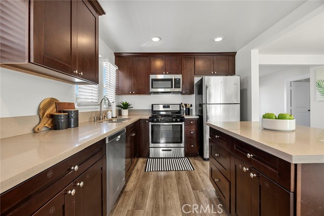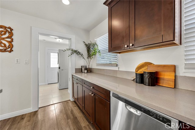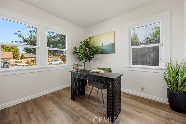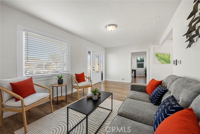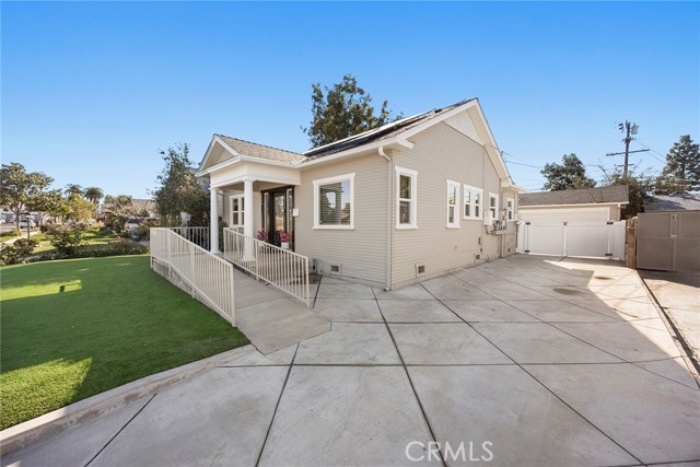 Whether for a 1st time buyer, downsizing sellers, or for investment, this home is ideal. Come see this desirable single-story home on a quiet cul-de-sac street in the heart of Placentia! A wonderful opportunity to own a charming vintage California bungalow with thoughtful modern updates. Built in 1925, this 2 bedroom, 2 bath home welcomes you with a spacious living room anchored by a large picture window that fills the space with natural light. Perfect for entertaining, the living room flows seamlessly into the dining room and kitchen, which features quartz countertops and stainless steel appliances. Neutral tones throughout make this home a blank canvas ready for your personal touch. This home has been updated with recessed lighting, newer dual paned windows, and newer luxury vinyl plank flooring. Enjoy the privacy of a fully fenced backyard. A long, spacious driveway leads to a detached 2 car garage perfect for multiple cars or recreational toys. The lot is perfect for hosting the ultimate bounce house birthday party. With an expansive 6,750 sq. ft. lot, this usable outdoor space is ready for your imagination. Is there potential to add on to the home due to the generous lot size or even build over the garage for expanded living space? Picture your very own garden, play space, outdoor kitchen, pool, or entertainer’s patio. The possibilities are endless! The property also includes recently installed solar panels, adding valuable energy efficiency and cost savings. Home has new interior and exterior paint. Washer and dryer hook-ups are located inside the home, with additional hook-ups in the 2 car garage. The garage has been updated with epoxy flooring. Located within walking distance of Valencial High School and 2 miles from renowned Troy High School, Cal State Fullerton, and Fullerton College, and close to the 57 freeway, shopping, and dining. A rare find with character, functionality and future potential. Make an appointment to view this home today!