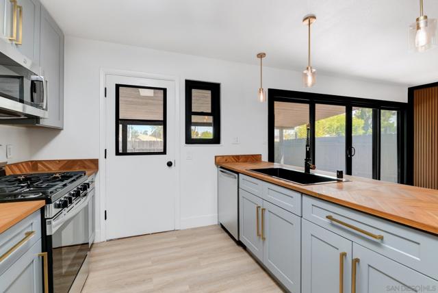 Fully Remodeled & Move-In Ready! Step into this beautifully updated 3-bedroom, 2-bath home featuring a versatile bonus space—perfect as a 4th bedroom, home office, or family room. Complete with a wet bar, mini-fridge, and direct access to the backyard, it’s ideal for entertaining or relaxing. The heart of the home is a stunning open-concept kitchen that flows seamlessly into the dining and living areas, all overlooking a covered patio and private backyard. New cabinets, butcherblock countertops, new appliances, lighting, flooring, and paint. The spacious primary suite includes its own en-suite bath, complemented by two additional bedrooms. Enjoy modern comforts: central heating and air conditioning; brand-new flooring, fresh interior and exterior paint, and updated lighting throughout the home. 2 car garage, laundry hook-ups, fully fenced front and backyards. This home checks every box—don’t miss your chance to see it in person!