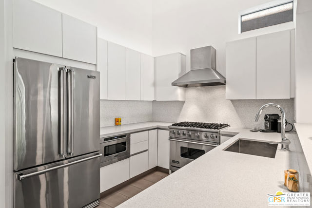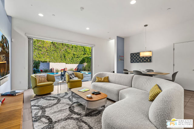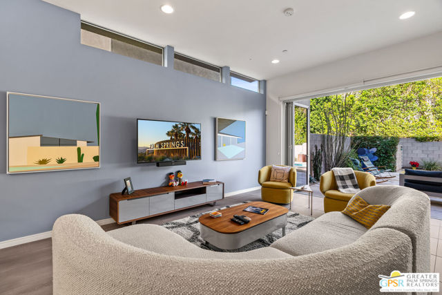 YOU DESERVE A HOLIDAY GIFT. THIS IS IT. Tucked into the exclusive "Dakota" enclave, this RARELY AVAILABLE, handsome townhome is basically a SFR: no common interior walls! South Palm Springs location and positioned at the foot of the mountains. FEE LAND for long term value in ownership and LOW HOA dues. A yard that balances space for entertaining with ease of maintenance, accessible through accordion doors providing seamless indoor/outdoor flow! Two generously sized bedroom suites plus a loft. A dream cook's kitchen complete with Viking appliances. Stunning, modern finishes throughout. This location enjoys the buzz of the city AND the serenity of nature. Don't hesitate or someone else will snag your dream home.