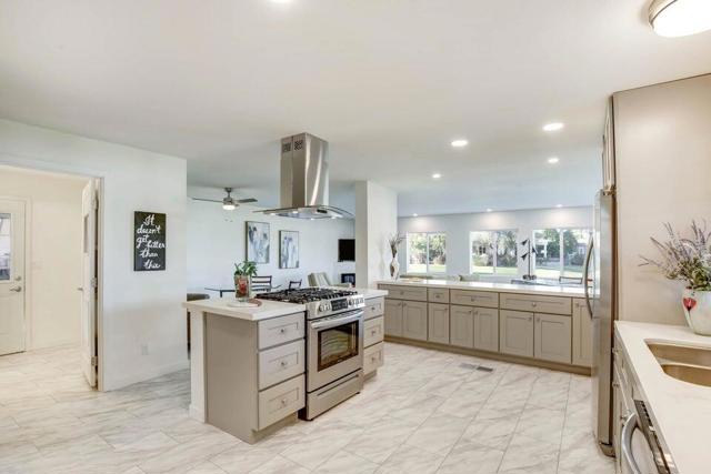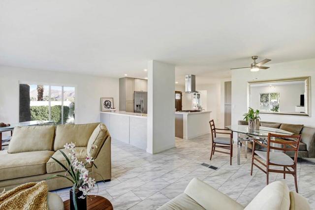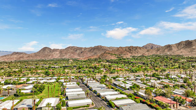 An Absolutele Stunning Home in the park! Ideal location on the greenbelt with 180 degree views of the mountains. This 2 bedroom with a den has been updated with all newer windows, double insulation, newer interiors and newer appliances. Beautiful tile in the master bathroom and gorgeous quartz countertop in the kitchen and bathrooms. Views from each room of the house. close to world famous El Paseo with its fine dining world class shopping and entertainment as well as some of the best hiking trails in all of the desert It's a must see! Space rent is $721.00, park approval is required. easy to show call Marilyn Schwartz