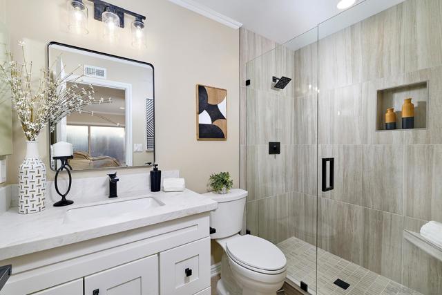Seller will entertain offers between $1,399,000-$1,499,000. Welcome to this beautifully transformed modern masterpiece, set on a quiet cul-de-sac in a desirable, family-friendly neighborhood. This move-in-ready home features modern style with an open floorplan—offering a fresh, elevated living experience inside and out. Step inside through the Mission-style mahogany door to new vinyl plank flooring, new bedroom carpet, and fresh interior paint that brightens every space. The remodeled kitchen shines with new countertops, a stylish tile backsplash, solid wood cabinets, a new sink and faucet, and updated lighting. The kitchen and dining areas flow seamlessly into the extra-large family room—an ideal space for everyday living and entertaining. Both bathrooms have been thoroughly redesigned with new vanities, fixtures, and showers. The primary suite features a walk-in shower with floor-to-ceiling tile and a frameless glass door. The secondary bathroom includes a new tub with tile extending all the way to the ceiling. Additional upgrades include Anderson windows, solid wood interior doors, upgraded baseboards, crown molding, window casings, a new dining room chandelier, and new LED can lights in the family room, hallway, bathrooms, and primary bedroom. The secondary bedrooms offer new floor-to-ceiling closet doors that add both function and style. Step outside from the expansive family room to a large paver patio and oversized backyard featuring a gorgeous pool, lawn, and gardens—perfect for relaxing or entertaining. See supp. The freshly renovated pool includes a Baja shelf, new tile, new plaster, a new skimmer, and a new filter. Mature landscaping features a prolific orange tree, grapevines, and a greenhouse. With plenty of space to grow, the yard can easily accommodate a guesthouse, ADU, or pool cabana. The exterior dazzles with fresh paint, new pavers in the driveway, front walkway, and backyard, plus a new garage door. Owned solar provides energy efficiency and long-term savings. Centrally located near major workplaces, schools, shopping, parks, and more—and within a top-rated school district—this home offers the perfect blend of convenience, community, and modern living. A rare opportunity to own a fully refreshed home in an exceptional location!