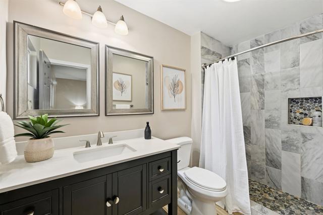 Enter this thoughtfully upgraded home featuring a stunning modern kitchen with quartz countertops, a butcher-block island, white shaker cabinets, and abundant storage including a pantry and dedicated coffee bar. Enjoy tile flooring throughout most of the home, providing both style and durability. The updated bathrooms showcase custom tile work, new vanities, and enhanced lighting for a fresh, contemporary feel. The low-maintenance yard features turf in both the front and back, along with a backyard deck perfect for relaxing or entertaining. Solar panels offer energy efficiency and reduced utility costs. Located just a short distance from the estuary with scenic walking paths, and close to the beach, local restaurants, and outdoor recreation, this home blends comfort, convenience, and coastal living.