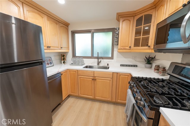Lovely 3 Bedroom 2 Bathroom Upper-Unit Condo. This Ultra Spacious home features an Open Concept with New Flooring, Quartz Counter tops, Stainless Steele Appliances, A Cozy Fireplace, Recessed Lighting, Some Updated Plumbing, New Fixtures, Triple Pane Windows & Designer Paint. The Primary Bedroom features an En-Suite Bath with Dual Sinks. The home boast's of, Not One but Two balconies and a separate Parking Garage. Located in a quiet, lush community with plenty of trees, green spaces and a sparkling pool to lounge around during the warm weather. Just Minutes from Shopping and Dining in Downtown Burbank, Several Studios, the NoHO Arts District, the Hollywood Burbank Airport and Freeways onramps.