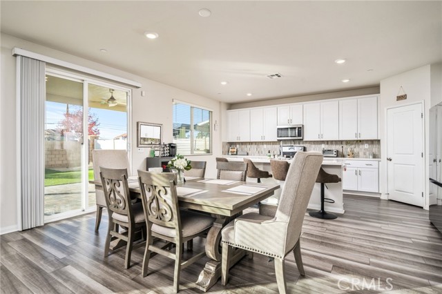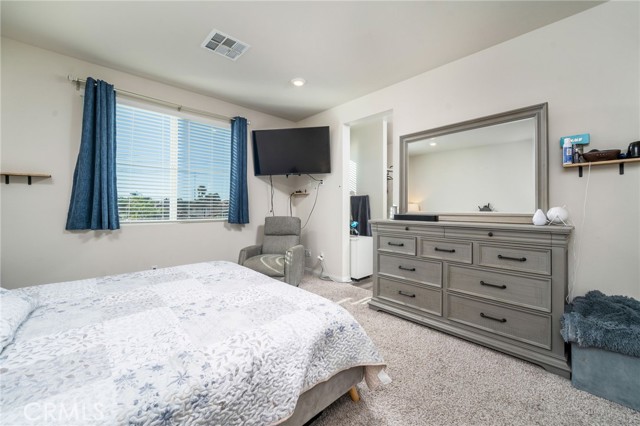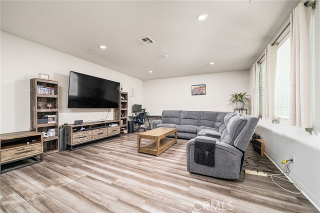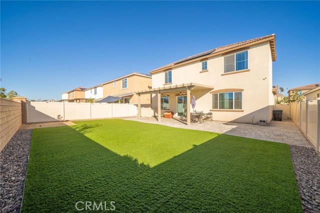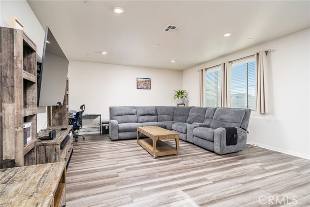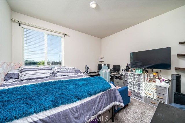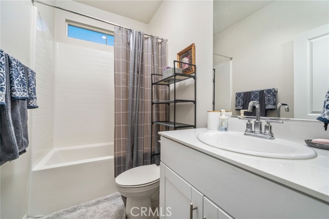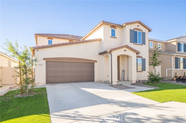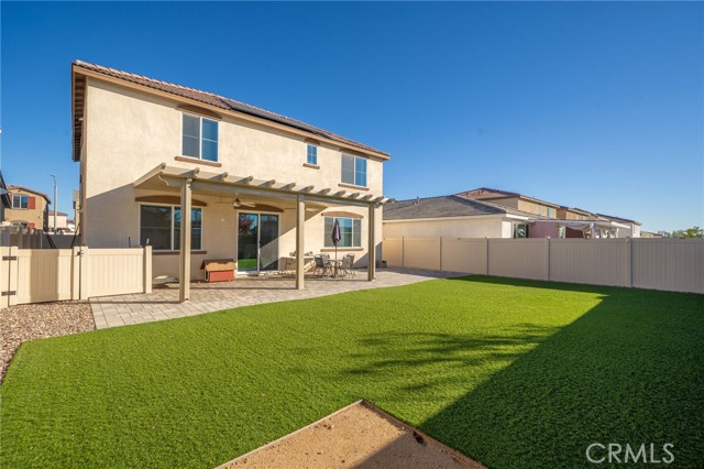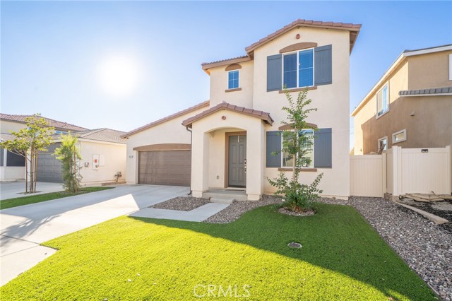 Welcome to this 2022-built home offering 4 bedrooms, 3 bathrooms, and 2,320 sq. ft. of modern living space, designed with both comfort and efficiency in mind. From the moment you step inside, you’ll appreciate the open and functional layout enhanced by vinyl flooring throughout the main floor, providing a sleek look and easy maintenance. The main level features a convenient bedroom and full bathroom, perfect for guests, multigenerational living, or a private home office. The heart of the home is the beautifully appointed kitchen, showcasing a center island with quartz countertops, ample cabinetry, and a walk-in pantry, making it ideal for everyday living and entertaining alike. Upstairs, you’ll find a spacious loft area offering endless possibilities—use it as a home office, playroom, or a home gym. The upstairs laundry room adds everyday convenience, while a full guest bathroom serves the secondary bedrooms. All upstairs bedrooms are carpeted, creating warm and inviting retreats. The primary suite is generously sized and flows seamlessly into the primary bathroom, which features vinyl flooring, a walk-in shower, and a spacious walk-in closet Step outside to a backyard designed for relaxation and entertaining. Enjoy a covered patio with ceiling fans, elegant paver hardscaping, and low-maintenance artificial turf, perfect for reducing water costs all year long. Adding to the home’s value and efficiency is paid-off solar, offering significant energy savings year-round. This is a huge plus! There is a tankless water heater for the home as well. The home is located within a well-maintained community where the HOA features a barbeque and picnic area, playground, and sport court, providing amenities for recreation and gatherings. This nearly new, energy-efficient home blends modern upgrades, flexible living spaces, and outdoor comfort—an exceptional opportunity you won’t want to miss. Make this great home yours today!