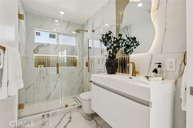 This Lomita stunner has been reimagined from the studs up, delivering a single-story layout that feels fresh, modern, and effortlessly comfortable from the moment you step inside. With 3 bedrooms + an office and approx. 1,939 sq ft of open, light-filled living space, every corner has been designed to look good and live even better. The heart of the home is the spacious living area, where a marble-accented electric fireplace makes a dramatic statement and gleaming white tile floors keep everything bright and crisp. Entertaining flows naturally here—there’s even a stylish half bath off the living room for guests. A dedicated office adds the perfect spot for focused work or creative projects. The showstopping chef's kitchen features an expansive quartz-topped island that sets the stage for cooking, gathering, and everyday life. A 5-burner gas stove, double oven, dishwasher, stainless undermount sink, and a generous pantry complete the space—equal parts stylish and functional. The primary suite is its own retreat, offering a huge walk-in closet and a beautifully finished bathroom with a step-in marble shower and all the spa-day energy you could ask for. Two additional bedrooms connect through a Jack-and-Jill bathroom, complete with another step-in shower and warm gold finishes that tie the whole design together. Step outside and the lifestyle expands. The sprawling backyard gives you room to dine, relax, entertain, or let everyone run free—complete with a covered pergola and a generous grassy yard that’s ready for weekend gatherings, cornhole tournaments, or a quiet morning coffee spot. A new HVAC system brings modern comfort to the entire home. Set in a sought-after pocket of Lomita, this home offers a stylish, move-in-ready lifestyle with thoughtful upgrades throughout—where comfort, design, and functionality come together with ease.