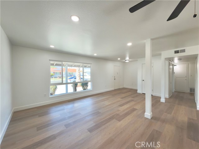 Fully renovated turnkey home in one of southern California's largest active adult communities with great amenities and very low HOA. This open floor plan home has been upgraded from top to bottom: all new energy efficient windows, freshly painted interior and exterior, luxury vinyl plank flooring throughout the entire home, new kitchen and vanity cabinets with quartz countertops and backsplashes, all new stainless steel appliances, new tub / shower combo, and recessed lighting in the living areas and bathroom. This house is a "must see".