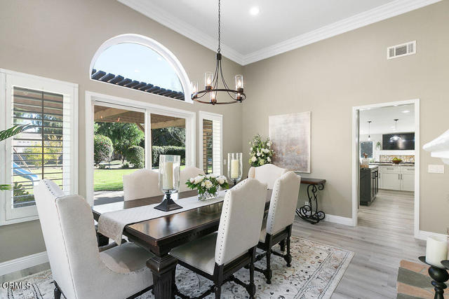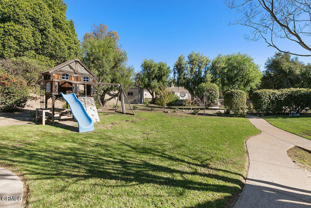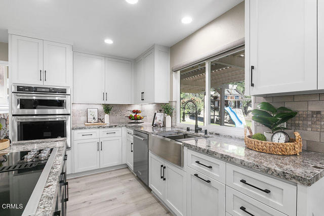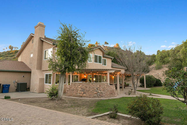 Bridlewood home with Detached Garage; RV Space. Auto Enthusiasts Dream EstateSanta Rosa Valley , Geneva Floor Plan. Cape Cod Elegance with Modern UpgradesNestled in the desirable Bridlewood community of Santa Rosa Valley, this beautifully remodeled panoramic-view estate blends Cape Cod charm with thoughtful modern upgrades. Set on 1.61 acres, this elegant two-story residence offers 3,080 sq. ft. of refined living space, exceptional privacy, and seamless indoor-outdoor living ideal for both relaxation and entertaining.A dramatic two-story foyer welcomes you with soaring ceilings and a striking dramatic staircase, the hallmark of the Geneva floor plan. Upgrades include newer Milgard windows and doors, newer flooring with added sub-flooring upstairs, LED lighting, fresh interior paint, and updated hardware. The living and dining rooms share a double-sided fireplace and capture serene hill views through oversized windows.The remodeled kitchen features custom cabinetry, refaced uppers, stainless appliances, granite counters, farmhouse sink, an island cooktop, breakfast bar, and a sunny nook. It opens to the family room with a second fireplace and direct yard access, creating the perfect great-room environment.A main-floor office/4th bedroom with built-ins sits adjacent to a full remodeled bath. The upgraded laundry room includes granite counters and a stainless sink.Upstairs, the primary suite offers vaulted ceilings, views, a soaking tub, steam shower, dual vanities, and a large walk-in closet. Two additional bedrooms and another remodeled bath complete the upper level.The resort-style grounds include a detached 37' x 24' shop plus a 20' x 13' storage room provide excellent flexibility.Fruit trees include lemon, lime, orange, guava, pomegranate, peach, plum, and nectarine. Six mature oaks, shade trees, raised planters, and WiFi-controlled sprinklers enhance the property.Additional highlights: attached three-car garage, large driveway, upgraded sliding French doors, and an ideal end-of-street setting.