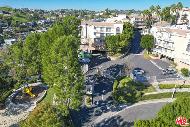Nestled in the hills of El Sereno, this private gated community offers a serene, resort-style lifestyle with an array of desirable amenities. Unit #2210 welcomes you with a spacious front patio and an inviting entry that offers an immediate glimpse of the home's standout feature, expansive sliding glass doors spanning nearly the entire east-facing wall. These doors bathe the interior in natural light while showcasing sweeping city views framed by treetops. The lower level features a front bedroom with sliding glass doors that open directly to the patio, along with a conveniently located full bathroom and an in-unit stackable washer and dryer. The primary suite offers a generous walk-in closet, while the upper-level suite includes its own private entrance and full bath, making it ideal for guests, extended family, or potential rental use. Hilltop Colony is a dog-friendly community with beautifully maintained grounds and resort-style amenities, including a pool and spa, playground, barbecue area, and a recreation room with a full kitchen perfect for entertaining and gatherings.