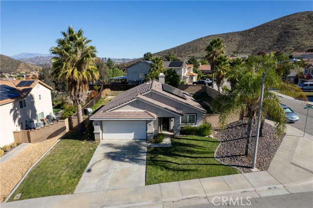 Welcome to this exceptional 3-bedroom, 2-bath retreat in one of Menifee’s most desirable neighborhoods, featuring a spacious corner lot, solar system for energy savings, and central A/C with dual-pane windows for year-round comfort. This beautifully maintained home offers an inviting family room with a cozy fireplace, perfect for relaxing evenings. Step outside to enjoy the large backyard with plenty of room for entertaining, gardening, or simply soaking in the tranquil setting beside scenic hills. Ideally located within walking distance to a neighborhood park, and just minutes from top-rated schools, shopping, and local conveniences, this home blends comfort, efficiency, and convenience in an unbeatable location.