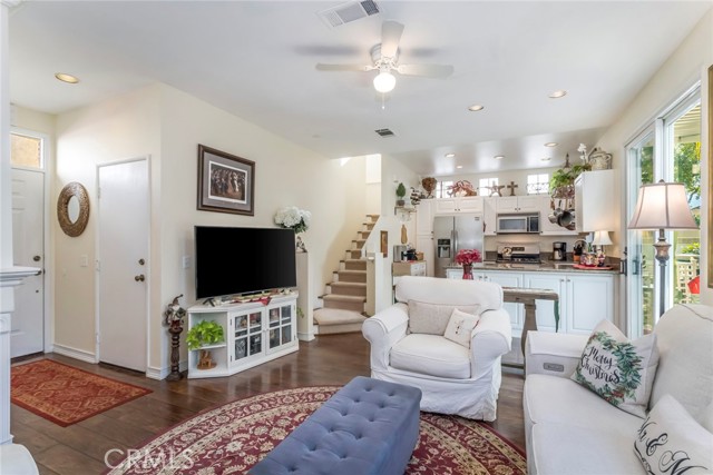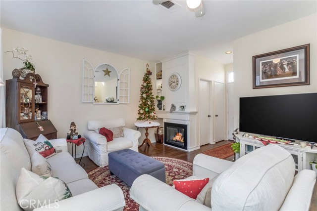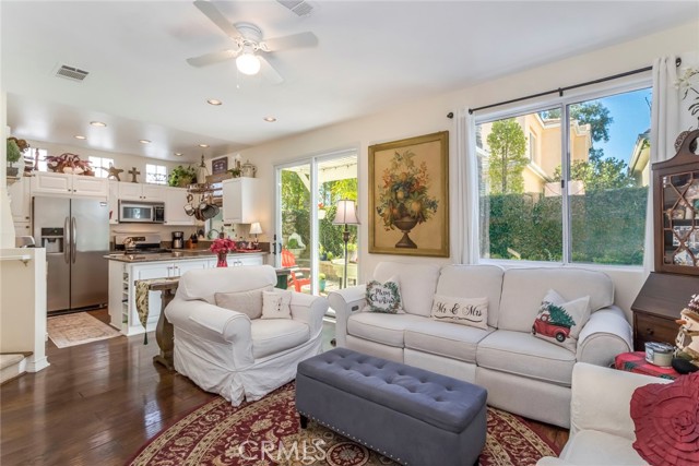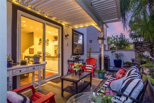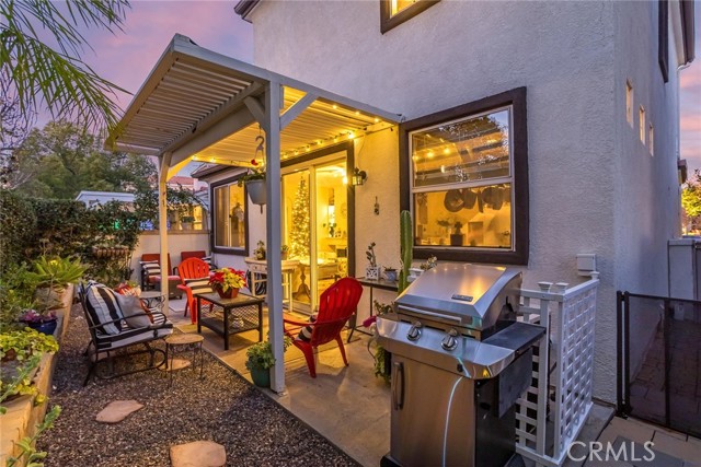 Come experience this beautifully upgraded, fully detached townhome located in the highly desirable Northpark community of Valencia. This Courthome Collection residence offers over 900 square feet of thoughtfully designed living space, featuring two spacious primary suites and three bathrooms. The open-concept main level is filled with natural light and showcases medium-toned wood flooring, inviting designer paint selections, upgraded lighting, and an abundance of windows, including a newer Andersen sliding glass door that seamlessly connects indoor and outdoor living. The refreshed kitchen features crisp white cabinetry, granite countertops, stainless steel appliances, updated fixtures, and a large stainless sink, creating a clean and timeless aesthetic. The generously sized family room is highlighted by a cozy fireplace with custom wainscoting, while the dining area opens to an expansive private patio ideal for al fresco dining and enjoying beautiful Santa Clarita evenings. Upstairs, you’ll find two private primary suites, each offering an ensuite bath with upgraded finishes, plush carpeting, and ample closet space. Thoughtful design details are found throughout the home, including coordinated stone countertops, upgraded cabinetry hardware, and chic tile selections. Additional highlights include a direct access two car garage with a dedicated laundry area and extra storage. Ideally situated on a quiet cul-de-sac, this home is conveniently located near award winning schools, popular restaurants, and beautiful parks. The HOA amenities include a pool, spa, picnic area, BBQ area and playground!