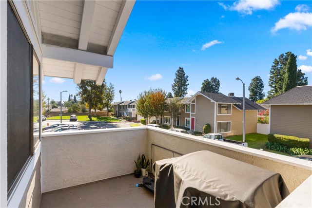 Bright, airy, and move-in ready, this two-bedroom condo at Walnut Village puts you in the heart of Old Town Orange with easy access to Chapman University and dozens of local shops and restaurants. The picturesque, landscaped community features a pool, spa, and plenty of parking, including an oversized 1-car garage with storage and a private reserved space in front of the home. Inside, the open living and dining area is designed for entertaining and everyday relaxation, featuring large windows and a breakfast bar that's perfect for cocktails and casual bites. The updated kitchen features white Shaker cabinetry paired with quartz counters and stainless-steel appliances. Your front balcony provides a sunny spot for grilling and outdoor entertaining. The primary bedroom is generously sized, complemented by a second bedroom and a fully remodeled bathroom with a quartz-topped vanity and custom tile. A dedicated laundry room with additional storage keeps everything organized. In addition to nearby shopping and dining, you're only moments from the Saturday farmers' market and El Camino Real Park with tennis and pickleball courts. The pedestrian-friendly Old Town Orange means you can truly live car-free when you choose. With style, comfort, and convenience, this one checks all the boxes!