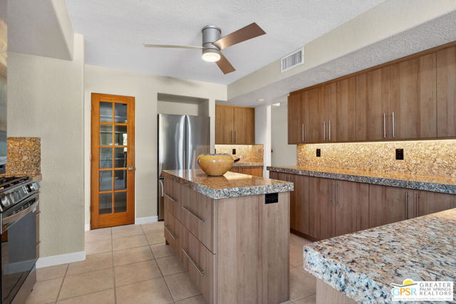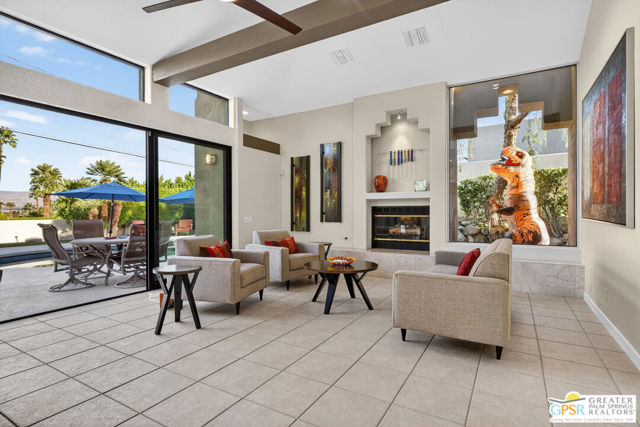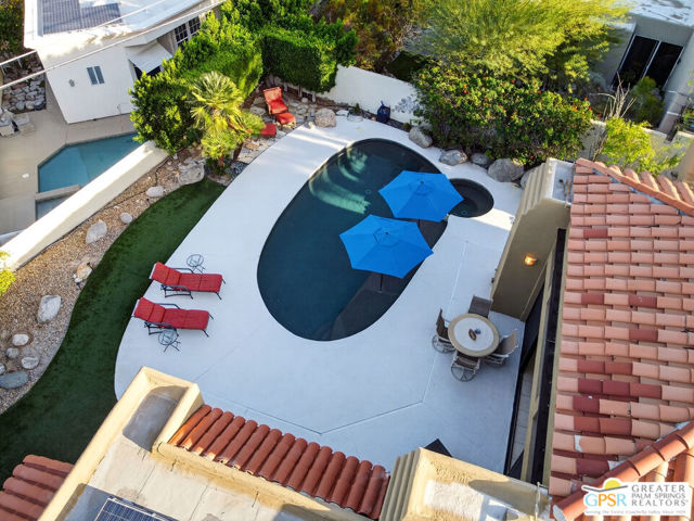 Perched in the coveted Chino Canyon / Little Tuscany hillside set in the shadow of Mt. San Jacinto this architecturally distinctive residence (designed by architect Chris Mills) delivers the Palm Springs lifestyle buyers crave: privacy, light, views, and resort-style outdoor living. As you enter, you're welcomed by an open-concept, step-down living area flooded with natural light from expansive windows framing sweeping desert and mountain panoramas. Gather by the fireplace in the spacious living room, then move seamlessly to the dining room for dinners with a view. The newly remodeled chef's kitchen is designed for both everyday ease and entertaining, featuring granite countertops, new stainless steel appliances, and custom cabinetry with plenty of workspace for everything from casual breakfasts to holiday feasts. The home offers four spacious bedrooms, including a serene primary suite with a large walk-in closet, a spa-inspired en-suite bath with dual vanities, soaking tub, and separate shower, and direct access to a private patio perfect for morning sunrises and evening breezes. Two additional bedrooms are thoughtfully placed on the opposite side of the home with a full bath between them for comfort and privacy, while a convenient powder room serves guests. A study/4th bedroom on the main level plus a separate office/hobby or craft space adds flexibility for today's work-from-home lifestyle. Step outside to your private desert oasis: a sparkling pool and spa, multiple patios for lounging and al fresco dining, and a beautifully landscaped yard with desert-friendly plantings that enhance the tranquil ambiance. Enjoy quiet moments on the patio off the primary suite, unwind in the secluded guest patio retreat, or host friends under the stars with dramatic mountain backdrops. With 38 solar panels, you'll also enjoy energy-efficient living in the desert. Hidden away from the bustle, Chino Canyon is an elegant neighborhood known for luxury hillside estates, boulder-strewn natural terrain, and a long-running appreciation for standout architecture near the Palm Springs Aerial Tramway area, and just minutes to boutique shopping, fine dining, world-class golf, hiking trails, and the vibrant Palm Springs arts and entertainment scene. Don't miss your chance to own this exceptional Chino Canyon retreat. Schedule a private tour today and experience the views, privacy, and lifestyle for yourself.