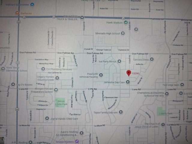 Victorville, Ca. 13290 Via Robles Circle. 4 bedroom, 2 bath, Corner Lot. Open concept kitchen and family room with fireplace. Open concept living room. Spacious main bedroom with large bathroom and large walk in closet. Spacious home in a nice neighborhood. Lots of cabinets in the kitchen. Nice size rooms. Inside laundry room. Located on Cul-de-sac with 3 car garage. Located in the heart of Victorville, You own the land. Private rear yard . Close to area schools, shopping, parks, restaurants, grocery store and close to highway access. Probate with full authority. Property sold 'As-Is'. Seller will make no repairs nor do termite. Seller and/or agent make no warranties. All information deemed reliable however buyer to do their own investigations to satisfy themselves.