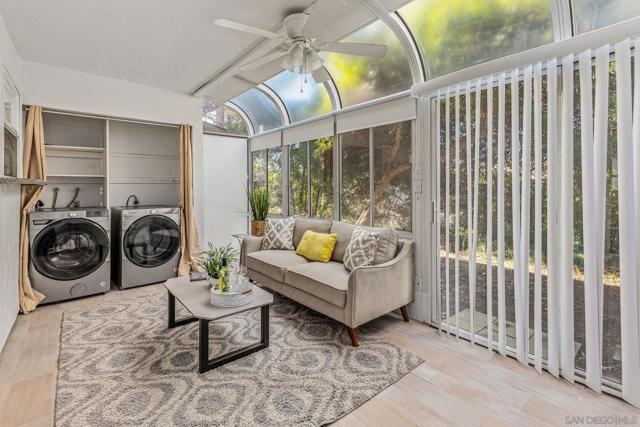 Located in the highly desired University City/La Jolla Village area, this lovely townhouse is ready for you to call home! This 2-story unit (with no one above or below) includes 3 bedrooms + a large sunroom and 1.5 bathrooms. Enjoy the beautiful view of a community park or go for a canyon hike on the trail that starts just steps away from the sunroom. Unit comes with an in- unit washer/dryer, ceramic & laminate flooring, custom built-in closet shelving, an outdoor storage closet, garage (with additional storage), driveway parking, and access to the community pool & parks! Walking distance to Doyle Community park (including a dog park) and 5 minutes from freeways, grocery stores, restaurants, UTC, and the UCSD campus. This unit is central, yet still quiet and peaceful.