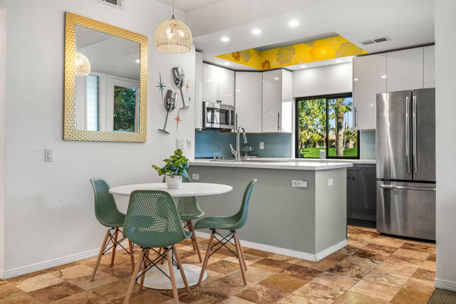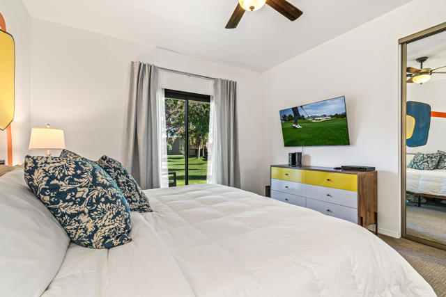 Turnkey, fully remodeled 2-bedroom, 2-bath condo offering exceptional value within Desert Princess Country Club. Beautifully positioned on a quiet cul-de-sac, this residence enjoys stunning golf course views and a peaceful, serene setting just steps from a nearby pool.Thoughtfully and completely remodeled, this condo showcases updated appliances, stylish finishes, and a polished Palm Springs-chic design. Offered fully furnished, it is ready for immediate enjoyment--whether as a primary residence, second home, or income-producing property.The home boasts a strong rental history, with 3-day minimum rentals allowed, making it an outstanding opportunity for short-term rental investors. The land lease has been extended through 2069, with a low monthly land lease payment of only $149.68, adding exceptional long-term value and affordability.Monthly HOA dues include internet, upgraded cable, trash service, building insurance (including the roof), meticulously maintained exterior landscaping, and access to the newly remodeled gym, offering true lock-and-leave convenience.Residents also enjoy resort-style amenities including an on-site restaurant and lounge, multiple pools and spas, a beautifully maintained golf course, and new EV charging stations located within the complex.A rare combination of style, serenity, flexibility, and value, this standout condo is perfectly suited for full-time living, a second home, or a high-performing rental.