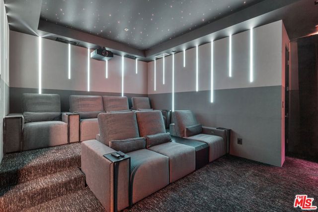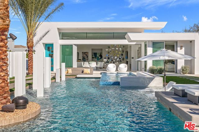 A striking contemporary estate located within the highly exclusive Quarry at La Quinta offers an elevated approach to desert luxury, blending cutting-edge design with a focus on wellness and innovation. Designed by renowned architect Brian Foster with landscaping by Foxterra, the 3,000+ square foot estate features full Josh AI smart home integration for seamless control of lighting, climate, security, and entertainment. Designed to accommodate both everyday comfort and elevated entertaining, the expansive open floor plan is framed by walls of sliding glass that dissolve the boundary between interior and exterior spaces. The home's private cinema is a true centerpiece, outfitted with rare McIntosh subwoofers, premium Triad speakers, and a Sony ultra-high-definition 4K projection system. With more than $1.2 million invested in bespoke audio-visual enhancements, the theater delivers an immersive sound and visual experience that rivals and exceeds elite commercial venues. Outdoor spaces are equally striking, with a resort-style front yard pool and a massive 156" outdoor TV ideal for entertaining under the desert sky. The sleek modern kitchen offers high-end appliances, custom cabinetry, and a spacious island. Eco-conscious features include solar panels, circadian lighting, and whole-home water filtration. Located within the exclusive Quarry community home to a Tom Fazio designed private golf course, clubhouse, and tennis courts this fully furnished, move-in-ready home offers unmatched privacy, luxury, and proximity to La Quinta dining, El Paseo shopping, and Indian Wells tennis.