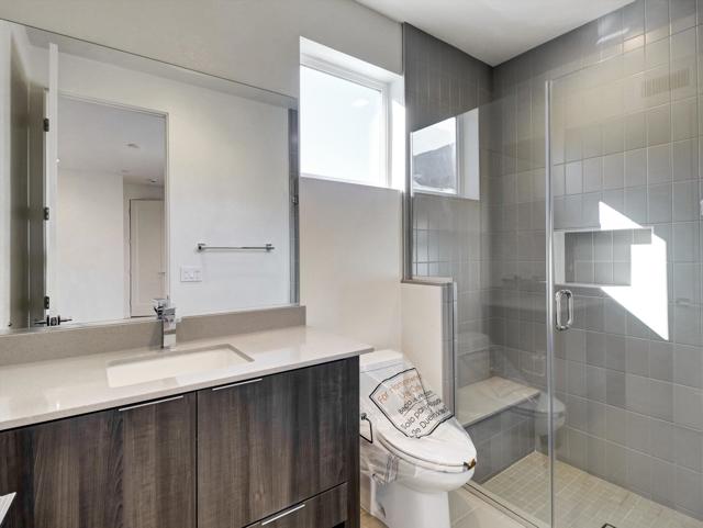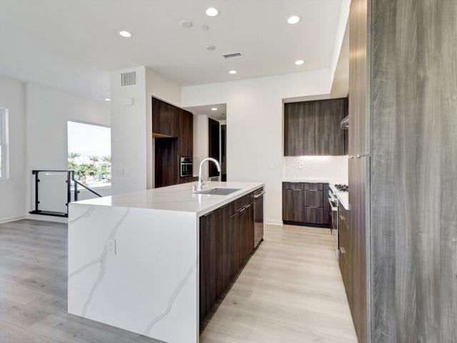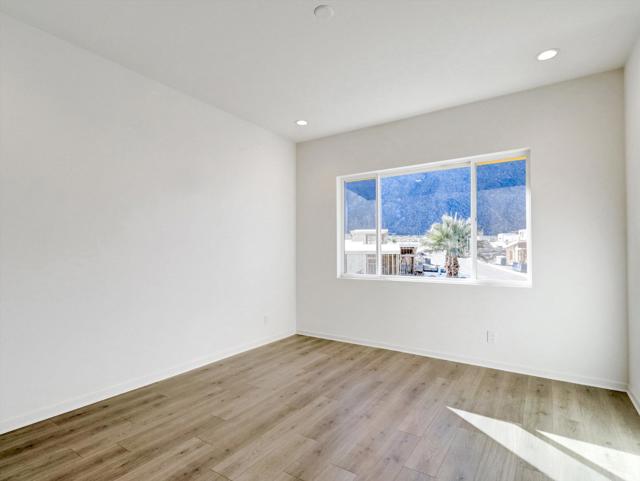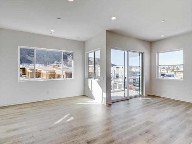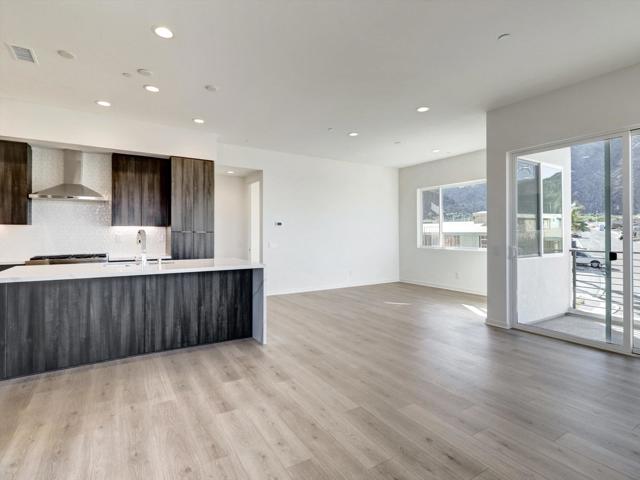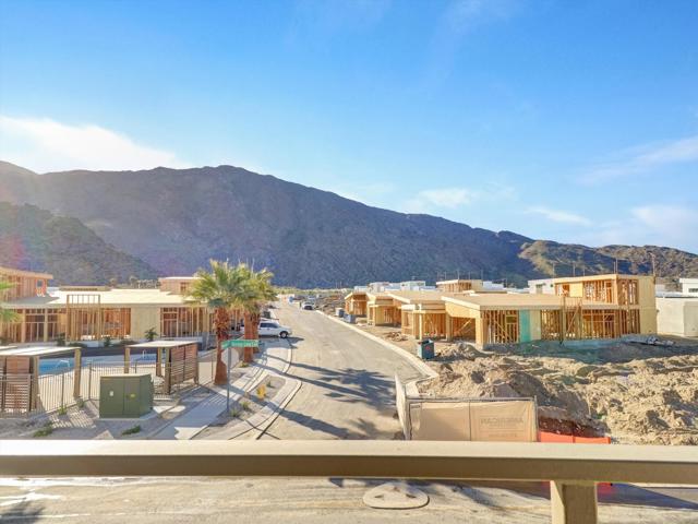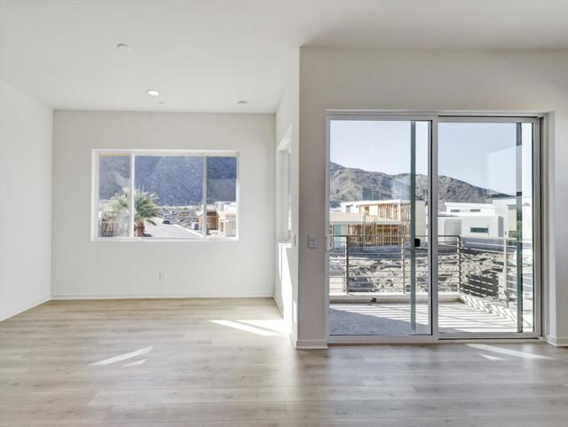 Welcome to Retro at E'lan Community and its offering of a mid-century modern townhome. This beautiful townhome features 1750 sqft of spacious living. This corner unit offers convenient location to the community pool and spa. This unit offers mountain Views from the living room, primary bedroom, and outside deck. Enter into 1st floor flex room and full bathroom which can be used as an office or gym! Head upstairs to the open family/living room and large kitchen featuring S/S Appliances, plenty of counter space, and island covered with upgraded quartz with water fall finish at island. Primary bedroom and bath with conveniently spacious walk in closet and dual vanities. Head down the hall to cozy guest bedroom with full bathroom. The home has Georgius Tile & Luxury Vinyl Plank Flooring throughout. This energy efficient home comes with Solar that is paid for and not leased. Paved shared driveway entering into 2 car garage offers direct access to your home. If you have a dog, you can enjoy the dark park included at elan. If you enjoy the nightlife, you are within walking distance to downtown South Palm Springs and all the restaurants and entertainment to keep you and your guest happy. Plenty of hiking trails starting with the Tahquitz Hiking Trail. The unit is part of a 5-unit building. Come be part of the story at Retro at E'lan Downtown Palm Springs! Some pictures are of Community Pool and Common areas!