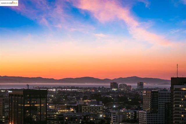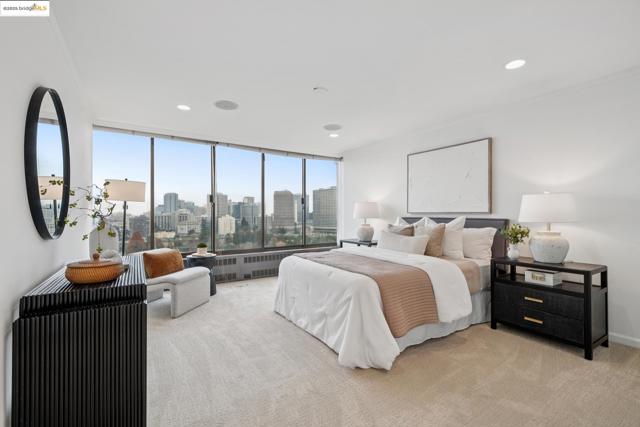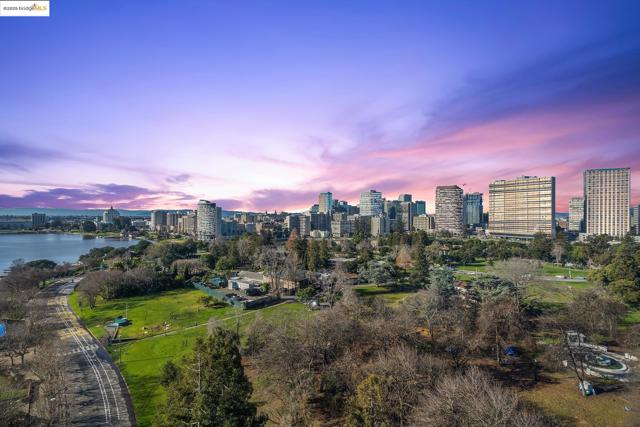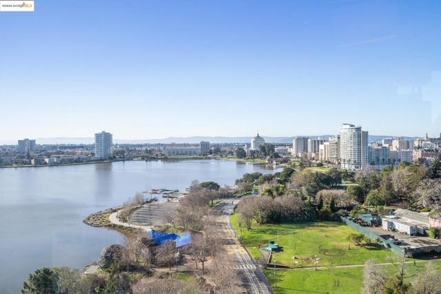 Welcome to Park Bellevue's newest panoramic Lake Merritt view masterpiece! This 2 bedroom 2 bath was just freshened up with new paint, gorgeous refinished parquet hardwood floors and new recessed lighting. Enter the open light filled custom kitchen with granite slab countertops and backsplash, Whirlpool Cooktop, Frigidaire oven, Kitchen Aid refrigerator and Miele dishwasher. The second bedroom has parquet floors and wonderful double doors that increase the panoramic views! The room can also be used as an office. The spacious primary bedroom has a panoramic view and generous closet space. The primary bathroom has a grand jacuzzi tub and shower with slab granite counters and ample storage space. In addition, you get Park Bellevue's panoramic view pool and deck, sauna, fitness center, club house, sauna and 24 hr doorperson. Its true luxury living at its best! Views: Downtown, Ridge