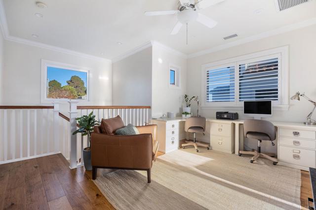 Experience coastal living at its finest with this stunning two-story home nestled in Seaside! Located west of the 5 on one of Oceanside’s most sought-after streets. Just a short stroll to the iconic Oceanside Pier, vibrant dining hotspots, and pristine beaches, this home offers the perfect blend of charm, style, and convenience. Plus, its prime location provides easy access to all major SoCal airports. Built in 2008 and thoughtfully updated, this custom built home is a dream for even the most discerning buyers. Step inside to discover updated hardwood flooring that flows through the main living areas. The chef’s kitchen is a showstopper, featuring custom wood cabinetry, a large island, upgraded appliances, a pantry, and an impressive 8-burner stove—perfect for culinary enthusiasts. The open-concept design connects the kitchen, dining area, and living room seamlessly, creating an inviting space for gatherings. The dining room opens to a cozy patio, ideal for outdoor dining or morning coffee. The main level boasts two bedrooms, including a serene primary suite, along with an upgraded bathroom. Upstairs, you’ll find a versatile loft space that leads to an expansive patio deck with peekaboo ocean views—your new favorite spot for entertaining or unwinding. An additional office space adds functionality to this already impressive layout. There are 2 additional bedroom located on second level. Outside, the backyard offers two charming sitting areas and a built-in BBQ, perfect for al fresco dining and weekend get-togethers. The fully fenced front yard, adorned with mature landscaping, adds to the home’s curb appeal, while the oversized two-car garage with alley access provides ample storage and convenience. This home also features a paid off solar. Don’t miss this incredible opportunity to own a slice of paradise just blocks from the beach. Schedule your private showing today and embrace the ultimate Southern California lifestyle!