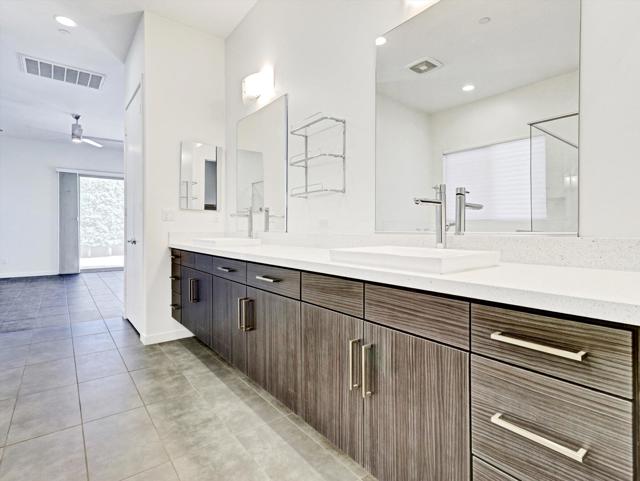 built in 2015, May be the best value for a resort property in Palm Springs.. Over 2500 sq ft.. 3 bedroom, 4 baths (all bedrooms are suites) Large great room with seamless access to enjoy the Resort back yard with room to build an ADU. Custom pool and spa with 2 covered patios. Spectacular mountain views with so much space to entertain . Owned solar system, Upgraded powerful A/C units. and a lot more. Property is virtually staged in four pictures