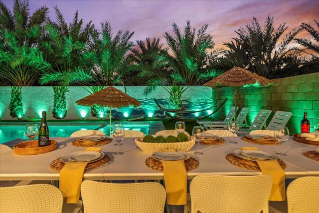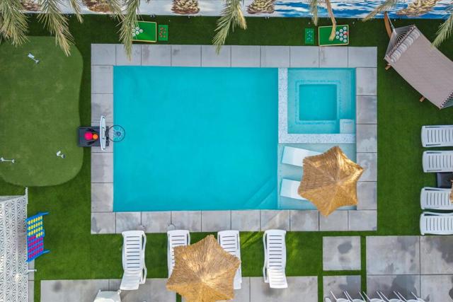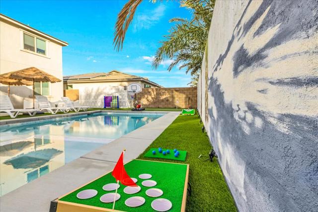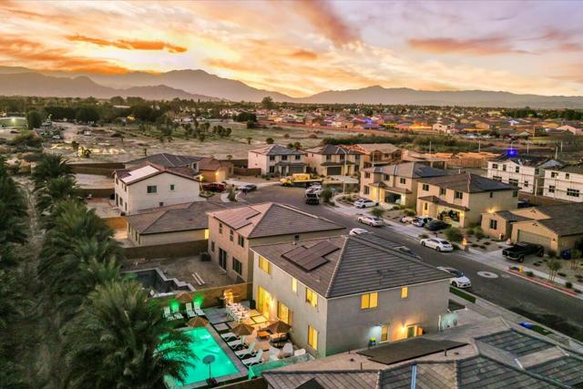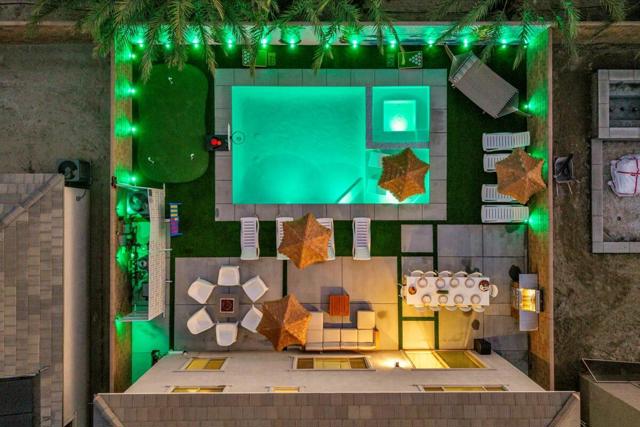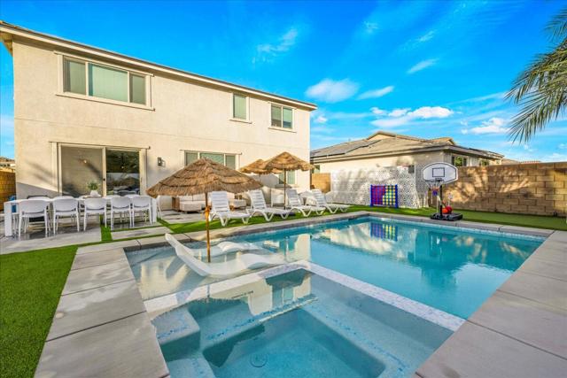 Stunning brand new 2025 construction offered fully furnished and designed for modern resort style living. This turnkey home features an open concept layout filled with natural light, wide plank flooring, recessed lighting, and stylish designer finishes throughout. The contemporary kitchen showcases sleek cabinetry, stainless steel appliances, a gas cooktop with modern hood, expansive countertops, and a large island that flows seamlessly into the dining and living areas, perfect for entertaining. The living room is highlighted by a custom accent wall and thoughtfully curated furnishings included with the sale. Step outside to a private backyard oasis featuring a brand new saltwater pool and spa, surrounded by modern hardscape, artificial turf, lush palm-lined privacy, and dramatic landscape lighting for evening ambiance. The outdoor space is ideal for entertaining and relaxation, offering multiple lounge areas, outdoor dining, bbq ,a fire pit, putting green, recreational game areas, and basketball hoop. Additional highlights include solar panels for energy efficiency, all new systems, a game ready garage space, and an indoor laundry room with two washer's and two dryer's included. With low maintenance landscaping and every detail carefully designed, this home is truly move in ready and ideal as a primary residence, second home, or investment opportunity. A rare chance to own a fully furnished, new construction home with a saltwater pool that shows beautifully and delivers effortless luxury living. Property allows for 30 day minimum rentals (buyer to verify). Contact listing agent for additional information and details, and schedule your private showing today.