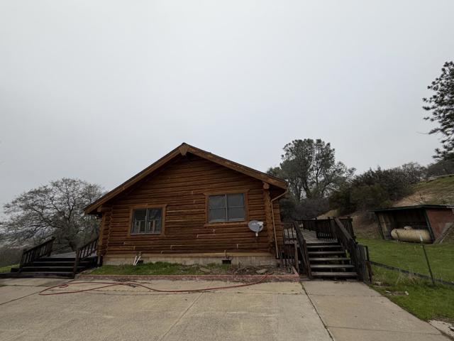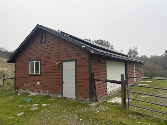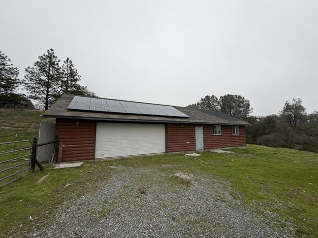 Private 10-acre ranch-style retreat with owned solar! This beautifully maintained two-story log home offers 2,064 sq ft with 3 bedrooms and 2 bathrooms on a fully usable, fenced and cross-fenced parcel. Enjoy peace, privacy, and wide-open pasture views while remaining conveniently close to town. Property features include a barn with hay storage, pasture areas ideal for horses or hobby farming, raised garden beds, chicken coop, and mature fruit and olive trees. Excellent private domestic well with a triple filtration system. The home showcases high ceilings, a spacious upstairs primary suite, wood-burning stove, central heat and air, and indoor laundry room. Detached two-car garage includes an unfinished in-law space above, offering future potential. Located near New Hogan Lake with easy access to outdoor recreation. A rare opportunity to own a true country property with usable acreage, infrastructure, and energy efficiency.
