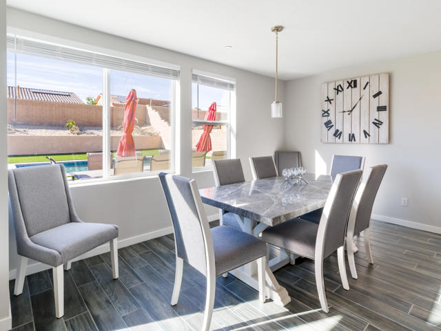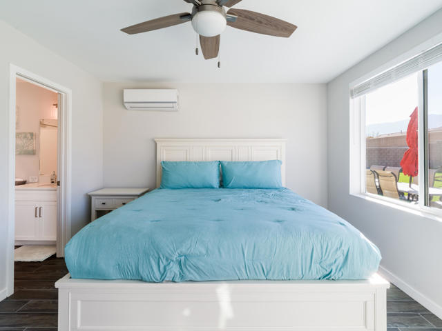 Every detail of this home has been thoughtfully and meticulously crafted by the world-renowned architectural firm Bassenian Lagoni, offering custom-level finishes at a production builder price. This beautifully designed residence features an open-concept floor plan with soaring ceilings and a great room bathed in natural light. The spacious primary suite includes a luxurious ensuite bathroom with a hand-crafted tiled shower, large soaking tub, dual vanities, private water closet, and an expansive walk-in closet. A private attached casita with a separate entrance offers a full bath and kitchenette--ideal for guests, extended family, or rental income. Step outside to your newly completed backyard oasis, where a stunning brand-new pool and spa are paired with freshly installed professional landscaping and a built-in outdoor firepit--perfect for entertaining or relaxing under the stars. Enjoy your favorite drink while soaking in the breathtaking panoramic views of the San Jacinto Mountains. Additional highlights include a paid solar system, energy-efficient construction, GE stainless steel appliances, over 11-foot ceilings, maple wood cabinetry, porcelain tile flooring throughout, an oversized ~10,000 sq ft lot, and the freedom of NO HOA and NO MELLO ROOS. Hurry this one will go Fast!!!