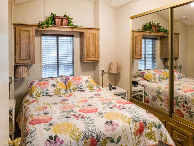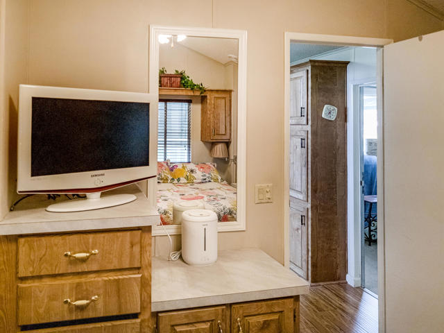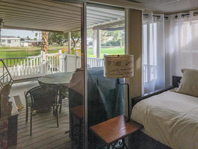 This inviting vacation retreat is conveniently located near the clubhouse and boasts stunning mountain vistas on the 2nd hole fairway of the golf course. The efficient Park Model home, built in 1991 and measuring approximately 550 sq. ft., features one bedroom, one bathroom, and a versatile California room that can serve as a second bedroom or office. Relax on your wind-protected deck while admiring lush landscaping and enjoying the soothing sounds of a nearby fountain. Notable upgrades include new flooring, counters, and backsplash, a new refrigerator, reverse osmosis water filtration at the kitchen sink, and a washer/dryer housed in the shed. To enhance energy efficiency, the roof has been white coated, and there is paved parking available. This charming home is part of the beautiful 55+ Caliente Springs Resort, offering amenities such as mineral-rich hot spring pools and spas, an executive 9-hole golf course, laundry facilities, chapel services, eight pickleball courts, and much more. Beyond the home itself, residents enjoy a vibrant, friendly community where social events and group activities are always on the calendar, providing opportunities to connect with neighbors and embrace the active resort lifestyle. Whether you're taking a morning dip in the mineral pools, joining a game of pickleball, or simply unwinding with the tranquil views from your deck, this retreat offers the perfect blend of relaxation and recreation in a beautifully maintained environment. With everything conveniently close at hand and picturesque surroundings to match, this is an ideal place to make the most of resort living year-round. Lot is not included; space rent is $811 per month.