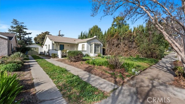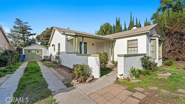 This charming vintage cottage bungalow is a rare blend of timeless character, thoughtful updates, and an inviting lifestyle setting. Located in one of San Bernardino’s established and desirable north-end neighborhoods, this residence offers classic architecture paired with everyday comfort. Inside, hardwood floors and darling original details set a warm and welcoming tone. The living room features a cozy fireplace that anchors the space and creates a natural gathering point. A dedicated dining area adds both function and charm, while the spacious kitchen offers ample room for entertaining and daily living. An indoor laundry area adds modern convenience without sacrificing character. Both bedrooms are well proportioned, and the full bathroom reflects the home’s enduring appeal. Recent improvements enhance peace of mind and efficiency, including a newer roof, HVAC system, water heater, and upgraded electrical panel, all completed within the past several years. Outdoors, the property truly shines. The front and rear yards have been lovingly cultivated into a lush garden retreat, ideal for those who appreciate outdoor living. A quaint front porch invites quiet mornings, while the covered brick patio in the backyard creates a serene space for dining, relaxing, or entertaining amid mature greenery. A detached two-car garage provides generous parking and storage, and the expansive backyard offers flexibility for future use. The location is equally compelling. Enjoy convenient access to local dining, neighborhood amenities, and nearby walking areas. The home is ideally situated near the 210/215 freeways, providing a commuter-friendly route to employment centers throughout the Inland Empire and efficient access to Los Angeles for work, dining, cultural attractions, and entertainment. Nearby shopping, parks, and established community destinations further enhance the appeal. This is a home that celebrates classic style, thoughtful stewardship, and a lifestyle that strikes a balance between charm and convenience. A special opportunity to own a truly inviting bungalow in a location that supports both everyday living and long-term value.