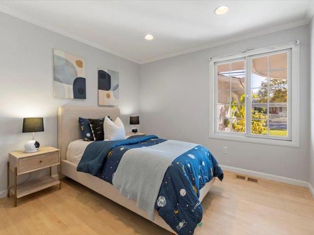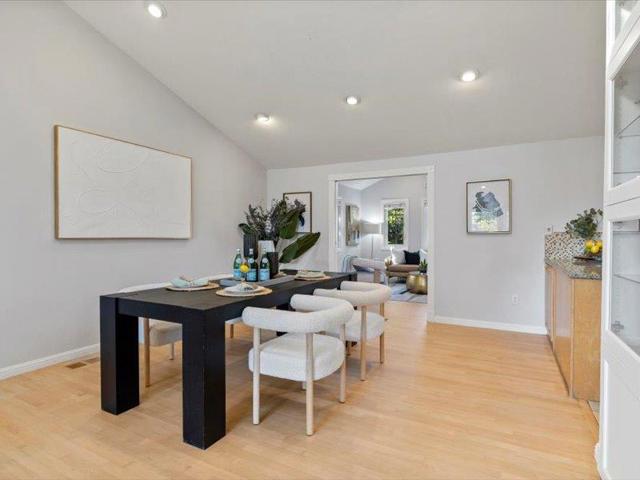 This beautiful 4-bedroom, 3-bathroom home offers 1890 sq ft of thoughtfully designed living space with an open floor plan and vaulted ceiling that fills the home with natural light. Elegant maple hardwood floors and skylights add warmth and charm throughout. The layout features both separate living and family rooms, perfect for everyday living and entertaining. Step out from the family room onto a gorgeous deck overlooking a serene backyard with mature fruit trees-an ideal space for relaxing and hosting guests. Conveniently located near highway 85. This home is just minutes away from saratoga village, downtown Campbell and downtown Los Gatos, offering comfort, Convenience and accessibility.
