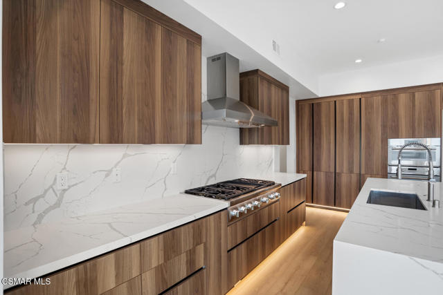 This exquisitely designed, brand-new modern two-story residence is located in the heart of Thousand Oaks and offers approximately 3,718 square feet of expansive luxury living on a flat 7,180 square-foot lot. Available for immediate occupancy, the home features four generously sized bedrooms and four and one-half bathrooms, including a desirable first-floor guest bedroom with an attached bath, ideal for visitors or extended family. Each bedroom is thoughtfully appointed with its own en-suite bathroom, ensuring privacy, comfort, and refined living throughout.This exceptional home is a true showcase of superior design, craftsmanship, and attention to detail, both inside and out. The residence reflects uncompromising quality and elevates the surrounding neighborhood with its sophisticated architectural presence. The open-concept floor plan effortlessly blends indoor and outdoor living, creating a seamless, inviting flow that is both functional and visually striking. Inside, the home offers a formal living room, dining room, and a spacious great room/family room, all finished with contemporary flooring, designer touches, and high-end materials including Italian cabinets.The chef's kitchen is a true centerpiece, featuring an oversized island, elegant quartz countertops, and premium Thermador appliances, perfectly suited for both everyday living and entertaining. Ten-foot ceilings throughout enhance the sense of space and light, appealing even to the most discerning buyer. The primary bathroom serves as a private retreat, highlighted by a frameless glass shower and sleek quartz finishes.The home enjoys serene panoramic views of the Santa Monica Mountains along with stunning sunsets, providing a peaceful backdrop to everyday living throughout the year. This private enclave by Hydam Homes is situated directly across from the prestigious, multi-million-dollar Lonestar Estates, also thoughtfully developed by Hydam Homes, further enhancing the desirability of the location.Located on the quiet cul-de-sac of Toyon Court, this home offers an exceptional balance of luxury, privacy, and comfort. Hydam Homes invites you to become part of this exclusive community of just nine residences. This remarkable new home presents a rare opportunity to enjoy timeless elegance, lasting tranquility, and exceptional value in one of Thousand Oaks' most desirable settings.