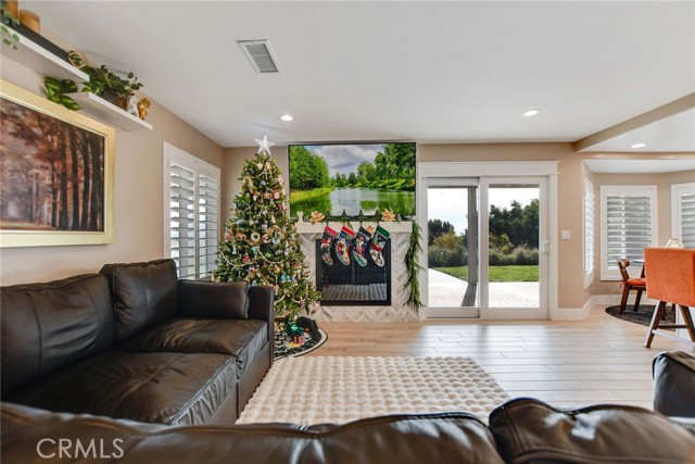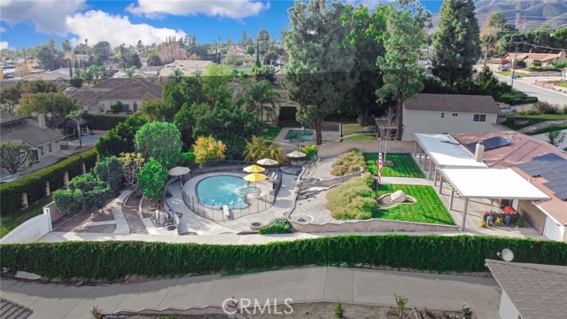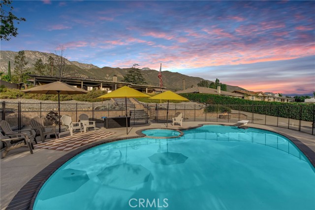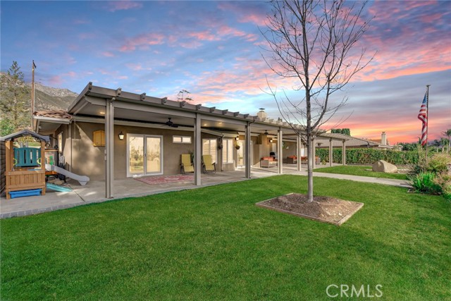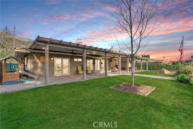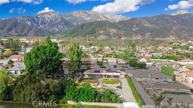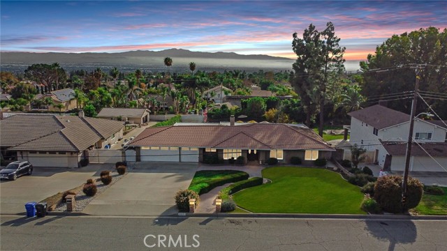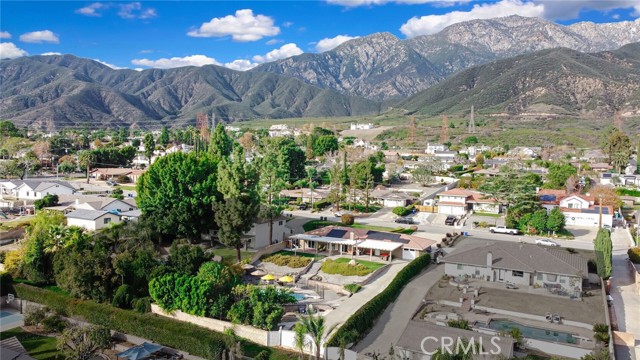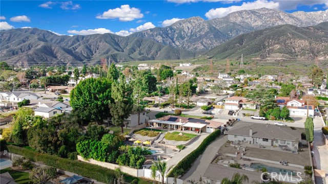 The La Senda Foothill Retreat Perched in the coveted Alta Loma foothills with sweeping city light and mountain views, this impeccably renovated single-story residence delivers refined craftsmanship, thoughtful design, and resort-style outdoor living on nearly half an acre of private grounds. The interior has been fully reimagined with premium finishes throughout. The chef’s kitchen, completed in October 2023, showcases shaker-style cabinetry, rare Taj Mahal natural stone slab countertops, a custom marble mosaic backsplash with brass accents, farmhouse sink, Kraus commercial faucet, and Samsung black stainless steel smart appliances. Italian porcelain wood-look tile flows seamlessly throughout, complemented by new interior doors, custom craftsman casings, wainscoting, upgraded baseboards, and fresh designer paint. The main living space is anchored by a dramatic marble fireplace with a custom cement wood-look mantle. A custom fitted office features shaker cabinetry and Taj Mahal quartzite countertops, echoed in hallway display and storage cabinetry for continuity and balance. Both bathrooms have been fully renovated. The primary suite offers a spa-inspired retreat with a glass-enclosed honed marble shower, bench seating, built-in alcove, shaker cabinetry, quartz countertops, and a professionally designed custom walk-in closet. The guest bath includes a cast-iron tub, porcelain tile, shiplap accent walls, and quartz finishes. The laundry room continues the luxury theme with custom cabinetry and quartz countertops. Upgrades include copper plumbing throughout, a new 50-gallon water heater, Pure Again whole-house water filtration system, hardwired security cameras, recessed custom shutters, solar panels, Tesla charging stations, epoxy garage floors and new garage doors with openers. Outdoors, the private resort-style backyard maximizes the expansive lot with a sparkling saltwater pool and spa, multiple patios, a fire pit, and covered outdoor living beneath an Alumawood patio with TV and ceiling fans. Mature landscaping surrounds a meticulously planned orchard with avocado, citrus, fig, pomegranate, apple, kumquat, and more—supported by a water-conserving drip system for nonstop seasonal fruit production. Magnificently maintained and thoughtfully upgraded, this exceptional home offers luxury living, breathtaking views, and a tranquil foothill setting—an extraordinary opportunity in one of Rancho Cucamonga’s most desirable neighborhoods.