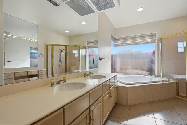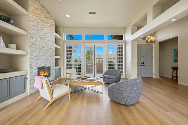 Wake up to sun-filled mornings and wide-open south-facing mountain views in this beautifully updated Sunterrace residence, where privacy, comfort, and effortless desert living come together.Perfectly positioned with HOA open space to the left, this home offers rare privacy with no neighbors looking into the backyard--creating a peaceful retreat that feels open, quiet, and serene.Inside, vaulted ceilings and clerestory windows flood the home with natural light, while new luxury vinyl plank flooring provides a clean, modern feel throughout. The layout is ideal for both everyday living and entertaining, flowing seamlessly from the interior living spaces to the resort-style backyard.Outdoors, enjoy a renovated PebbleTec pool and spa with upgraded pump, filter, and heater, plus a built-in natural gas BBQ and cooking station--perfect for sunset dinners, weekend gatherings, or relaxed evenings under the stars.The home has been thoughtfully upgraded with major systems already addressed, including a newer high-capacity HVAC system with improved airflow and garage feed, hot water recirculation system, LED lighting throughout, and a new water heater (2023). Kitchen and laundry appliances have also been updated, with a new refrigerator (2023) and washer/dryer (2024).Additional touches such as updated bathrooms, taller toilets, soft-close cabinet doors, desert-scaped front landscaping, and a WiFi-enabled garage door opener enhance daily comfort and ease of living. A seller-paid home warranty provides added peace of mind in this well-maintained, move-in-ready home.Sunterrace offers low HOA dues of approximately $295/month, which include 1 Gig high-speed internet + WiFi, TV Select Plus with sports and entertainment, three Xumo TV boxes with unlimited cloud DVR, and a robust package of streaming services including Hulu, Disney+, HBO (ads), ESPN+, Paramount+, AMC+ (ads), Peacock (ads), and ViX Premium, along with modem and router--an exceptional value rarely found in desert communities.Located in this desirable, gated community with convenient access to shopping, dining, and golf, this property offers outstanding value--one of the few opportunities under $1,000,000 in the neighborhood.