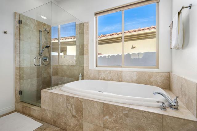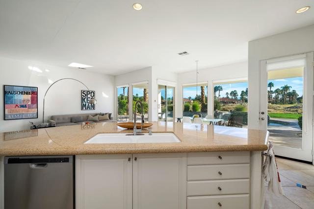 Stunning Home with unmatched views on the 11th Green of the Nicklaus Private. This exquisite Augusta One model, spanning approximately 2,205 square feet, boasts 3 bedrooms and 3 bathrooms. The spacious great room with open floor plan and wall of glass offers a perfect flow for entertaining and a cozy fireplace. The light & bright kitchen offers custom granite counter tops & white cabinets & appliances and a wet bar with sink and wine refrigerator. Home offers tile floors with marble inserts. Primary has wood floors, a large walk-in closet, separate shower and tub, and direct access to the outdoor space with private patio and stunning salt water pool and spa featuring a cascading rock waterfall--perfect for entertaining and relaxation, mature fruit trees adding charm and character to the property. There is a 2 car and golf cart garage with epoxy floors and a tankless water heater. . Offered Furnished.