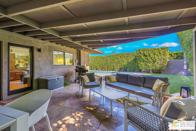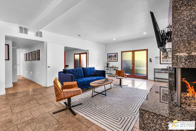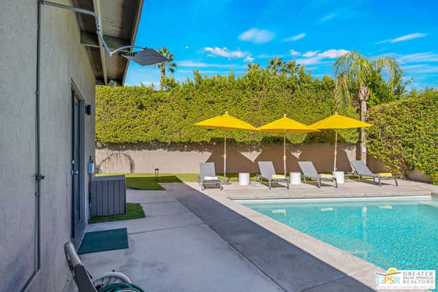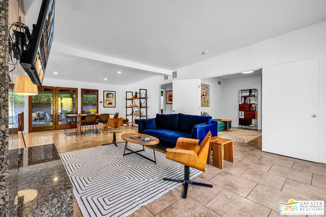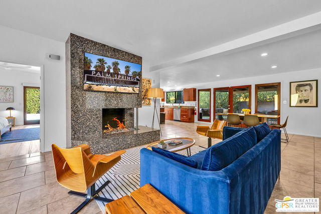 Discover this wonderful 4 bedroom and 2 bath home in the Movie Colony East neighborhood located in central Palm Springs. Gated like a mini compound and offered turnkey furnished, this home is ready for you to start enjoying Palm Springs like a movie star. Step through the front door to discover a large open floor plan centered around a fabulous fireplace, perfect for those cold winter evenings. The large kitchen is perfect for entertaining and overlooks the pool, patio, and opens to the generously sized dining area. Step into your private primary ensuite and enjoy the privacy from the other guest bedrooms. This home can be configured to accommodate your lifestyle; Although it is currently set up as a 3 bedroom plus den, but could be set up as a 4 bedroom home, or even a 2 ensuite bedrooms, an office, and a den home. Step outside to enjoy the magnificent pool and spa or go under the large patio cover for a large family and friends festive lunch. This home has it all! So, don't be shy and call agent for a private showing!