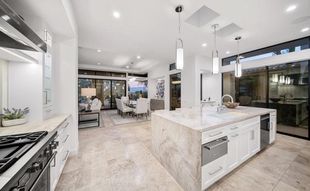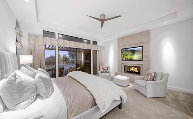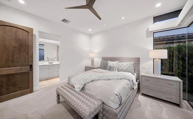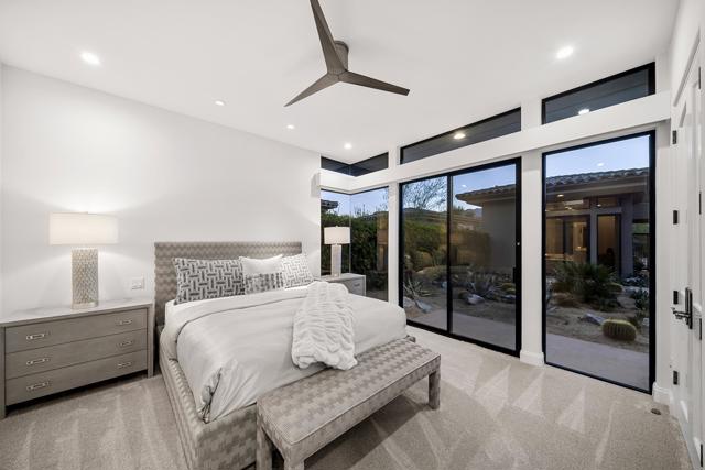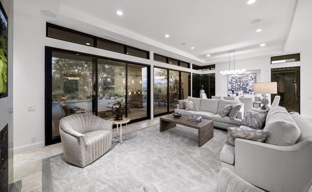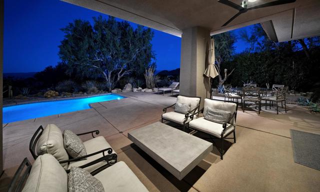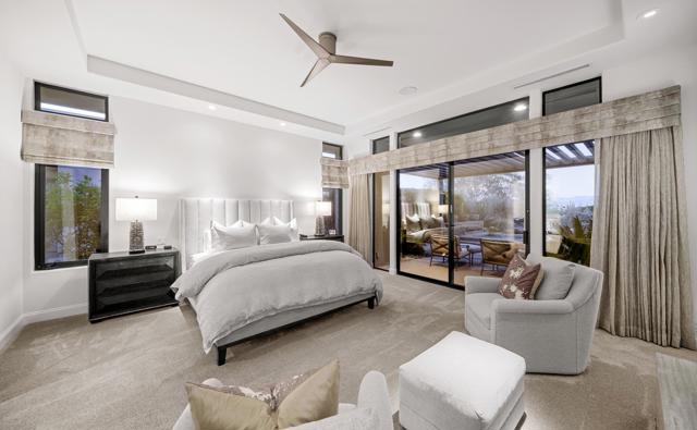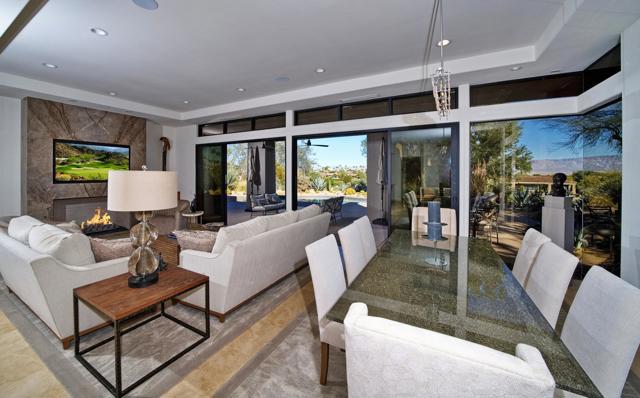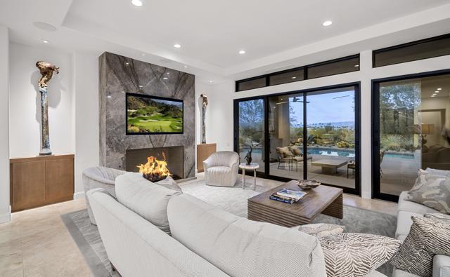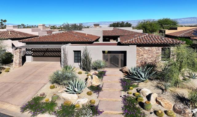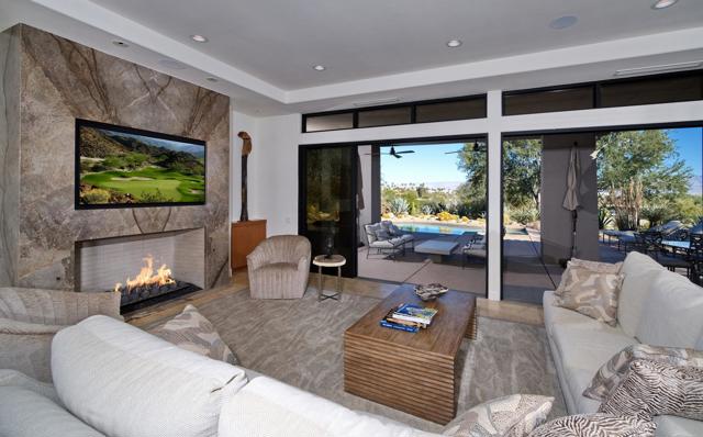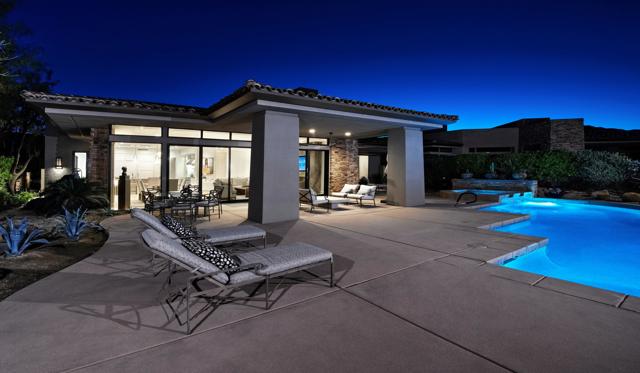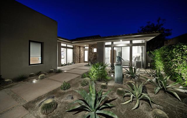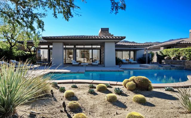 Exceptionally reimagined in a Desert Contemporary style and embraced by a gorgeous setting overlooking the 3rd green, lake and mountain views, this stunning 3,608 square foot Reserve home effortlessly blends indoor-outdoor living in a delightful environment that enhances every aspect of the desert lifestyle. A private courtyard entry invites you inside this open floor plan into a beautifully arranged great room with fireplace, dining area and custom bar all immersed in comfort and sophisticated style. Walls of glass allow abundant natural light throughout and capture views of the magnificent surrounding scenery. The gourmet kitchen is both elegant and functional, featuring generous cabinetry, high-end appliances, and a large center island with seating. The primary retreat is a true sanctuary, offering a serene sitting area with fireplace, a luxurious bathroom, and a separate office. Two additional guest bedrooms provide comfort and privacy for family and friends, while a detached guest casita offers an ideal space for extended stays. Step outdoors into a spacious covered patio where entertaining and relaxing seamlessly flows around the sparkling pool and spa. Whether you are lounging poolside or taking in the vibrant sunsets this desert oasis all comes together in perfect harmony. The Reserve Club offers world class amenities including a Tom Weiskopf-Jay Morrish designed championship golf course, three Trophy Holes and a double-ended practice range. The Club Village includes Clubhouse; Lakehouse for casual dining; Fitness Center with exercise rooms, extensive cardio equipment, Jr. Olympic size pool, Tennis and Pickleball; and Golf Shop.