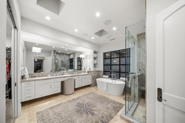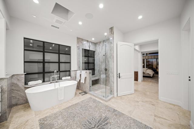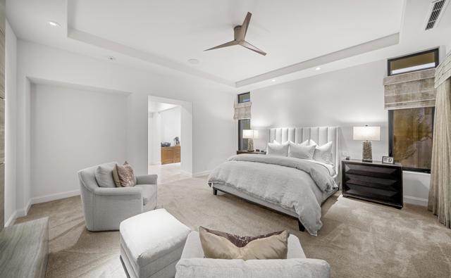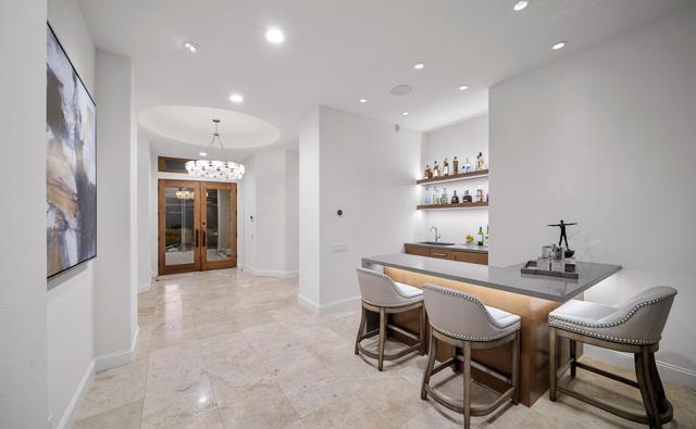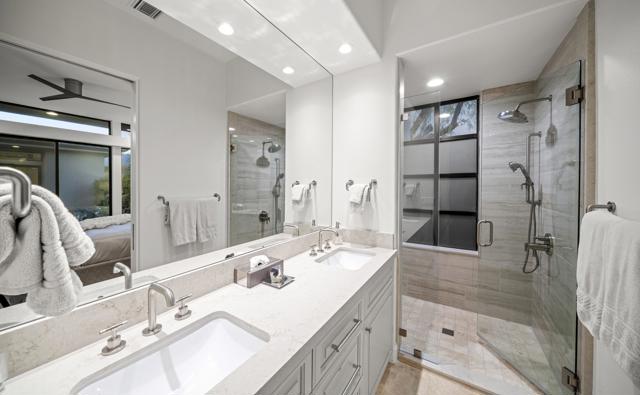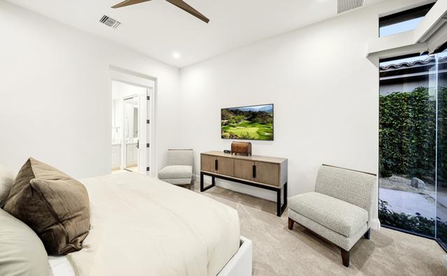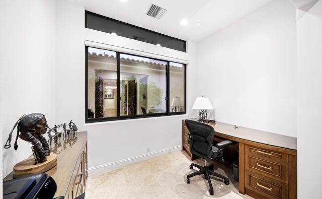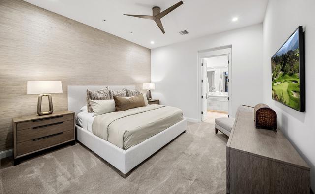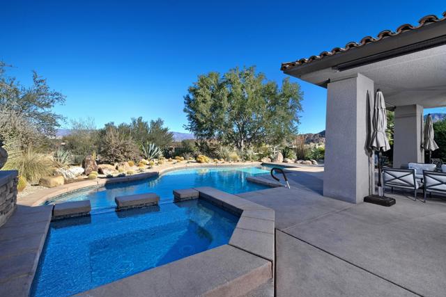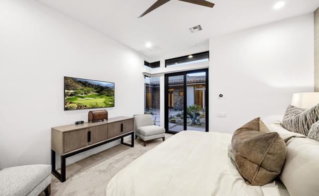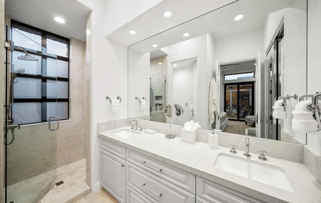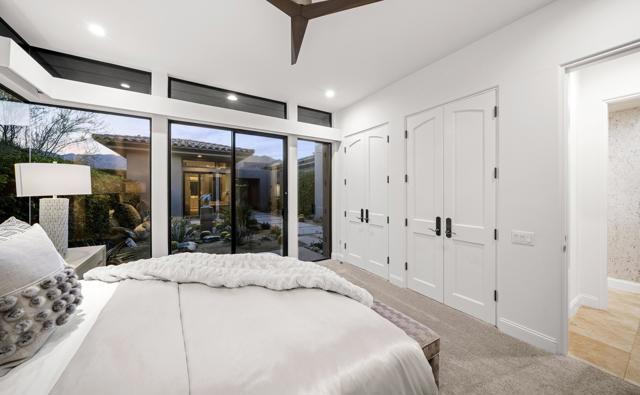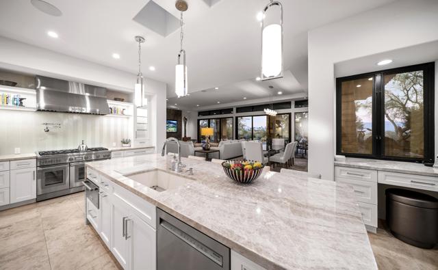 Exceptionally reimagined in a Desert Contemporary style and embraced by a gorgeous setting overlooking the 3rd green, lake and mountain views, this stunning 3,608 square foot Reserve home effortlessly blends indoor-outdoor living in a delightful environment that enhances every aspect of the desert lifestyle. A private courtyard entry invites you inside this open floor plan into a beautifully arranged great room with fireplace, dining area and custom bar all immersed in comfort and sophisticated style. Walls of glass allow abundant natural light throughout and capture views of the magnificent surrounding scenery. The gourmet kitchen is both elegant and functional, featuring generous cabinetry, high-end appliances, and a large center island with seating. The primary retreat is a true sanctuary, offering a serene sitting area with fireplace, a luxurious bathroom, and a separate office. Two additional guest bedrooms provide comfort and privacy for family and friends, while a detached guest casita offers an ideal space for extended stays. Step outdoors into a spacious covered patio where entertaining and relaxing seamlessly flows around the sparkling pool and spa. Whether you are lounging poolside or taking in the vibrant sunsets this desert oasis all comes together in perfect harmony. The Reserve Club offers world class amenities including a Tom Weiskopf-Jay Morrish designed championship golf course, three Trophy Holes and a double-ended practice range. The Club Village includes Clubhouse; Lakehouse for casual dining; Fitness Center with exercise rooms, extensive cardio equipment, Jr. Olympic size pool, Tennis and Pickleball; and Golf Shop.