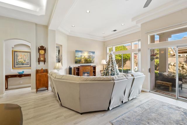 Imagine ringing in the New Year in a new home! This property is the ultimate gift to yourself for 2026. There is no better way to start your next chapter in the heart of Sun City's premier 55+ community. Once you pass through the gated front entry and step through the double front doors, the entryway greets you with natural light, courtesy of the clerestory windows and elegant tray ceilings featuring custom accent lighting. Thoughtful design and spacious living in this ''Emerald'' model which is celebrated for its open, flowing layout and generous proportions. This 3 Bedroom and 2 1/2 Bathroom home has a spacious living room and dining area which flows into the kitchen and family room featuring custom built-ins. The heart of the home features a large center island and a cozy breakfast nook for casual mornings. The home's flexible layout Includes a dedicated private office, primary en suite with walk-in closet, soaking tub and shower. The over-sized guest en suite ensures your visitors enjoy privacy and comfort. Step outside and relax under the covered patio, perfect for al fresco dining while listening to the tranquil sounds of your personal waterfall feature. Plenty of storage for every hobby whether you're a car enthusiast or a golfer, the garage setup is a dream. This property features a 2-car garage PLUS a dedicated golf cart/storage garage, offering ample room for your vehicles, tools, and gear. Enjoy world-class amenities just minutes from your door with a vibrant social calendar. Sun City is the ultimate community with multiple clubhouses, restaurants, fitness center, indoor and outdoor pools and spas, 2 championship golf courses, driving range, putting range, pickleball, tennis, bocce courts, library, theater, ballroom, on-site post office, coffee bar, dog park, softball field, plus approx. 80 clubs to join! Make this New Year your best one yet in a community that feels like a resort.