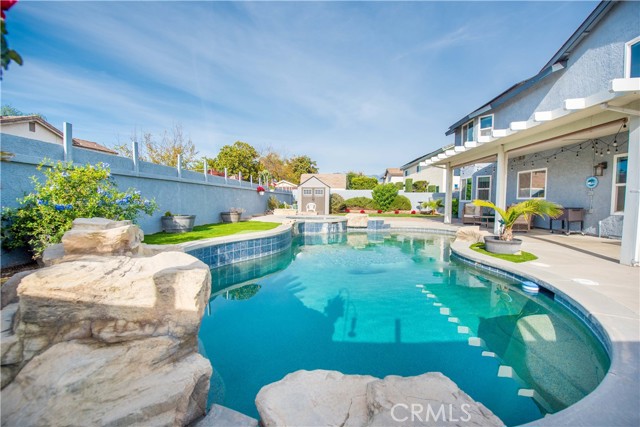 This Beautifully Updated 4-Bedroom, 3-Bath Pool Home is Located in a Desirable Neighborhood and offers the Perfect Blend of Comfort, Style, and Fun. From the moment you arrive, you’ll Appreciate the Attractive Curb Appeal, Featuring a Professionally Landscaped Front Yard with Artificial Turf for Easy Maintenance. Inside, the Home Welcomes you with a Living Room Highlighted by Wood-Look Tile Flooring, a Raised-Hearth Fireplace, Custom Lighting, and Vaulted Wood-Plank ceilings that add Warmth and Character. The Remodeled Kitchen is both Stylish and Functional, Featuring a Farmhouse Sink, Jenn-Air Double Oven, Butcher-Block Countertops, and a Tile Backsplash, Walk-In Pantry, making it a Great Space for Cooking and Entertaining.Additional Features include Ceiling Fans, Newer windows, Recessed Lighting, and Beautifully Remodeled Bathrooms with Granite Countertops. Energy-Efficient Upgrades include a Whole-House Fan and Paid-Off Solar Panels. The Backyard is Designed for Enjoyment, offering a Refreshing Pool and Spa with Pebble-Tech Finish (Children’s Safety Gate Included), a Firepit, Natural Grass Area, a Separate Artificial Turf Space, an Aluminum Covered Patio, and Storage Sheds—Perfect for Entertaining, Relaxing, and Everyday Fun. Located within the Chino Unified School District, Voted the Inland Empire’s Favorite School District, This Home Truly Has It All. A Must-See Opportunity You Won’t Want to Miss!