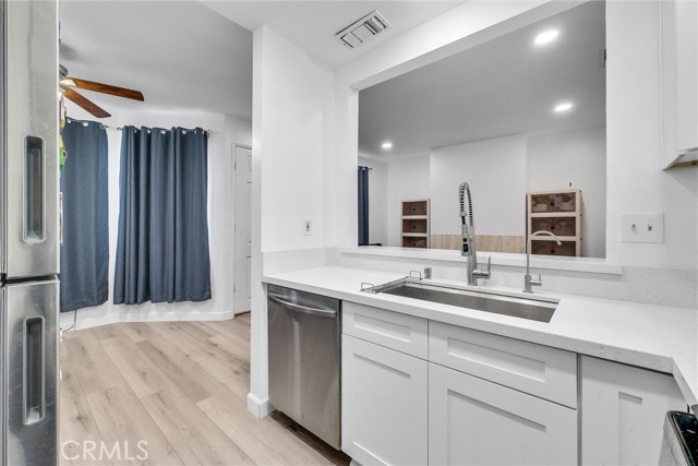 This renovated 3-bedroom condo has beautiful fixtures & finishes, along with lots of storage and a great location. The unit has a private front courtyard where you can grill up dinner or enjoy a quiet cup of coffee in the morning. When you enter through the front door, you'll find an open layout with fresh paint, recessed lighting, wide-plank LVP flooring (no carpets here), a cozy fireplace and two big windows that fill the main level with natural light. The renovated kitchen features stunning quartz countertops, white Shaker cabinetry, stainless appliances, a workstation sink, a dining nook and a breakfast bar overlooking the living room. The main floor also offers a powder room and has direct access to the 2-car garage – which includes plenty of storage space & the laundry area. Upstairs, you'll find the bedrooms plus a large loft that includes a skylight and floor-to-ceiling built-in storage. The primary bedroom boasts a spacious ensuite with dual sinks and a step-in glass shower. The guest rooms down the hall both have ceiling fans & ample closet space. This quiet condo community has a gated entry and offers residents amenities like a community pool, meticulously landscaped grounds & guest parking. You'll be just 2 minutes from all the shopping & dining along N Azusa Ave., with top-ranked schools all less than a mile from your front door. You can hop on both the 10 & 210 Fwys in less than 5 mins, or take the MetroLink (5 mins away) for an easy commute!