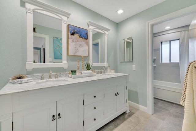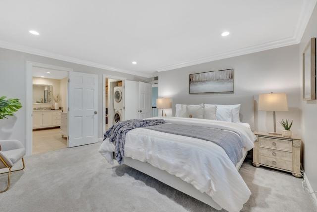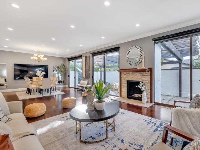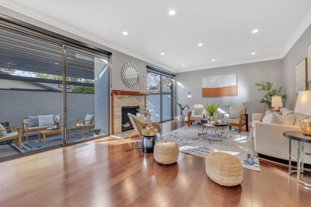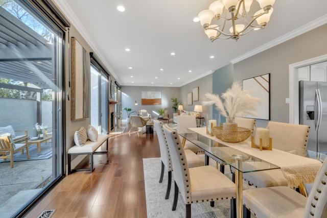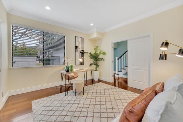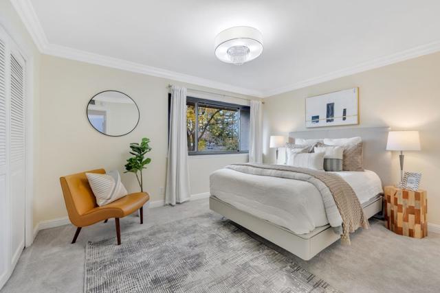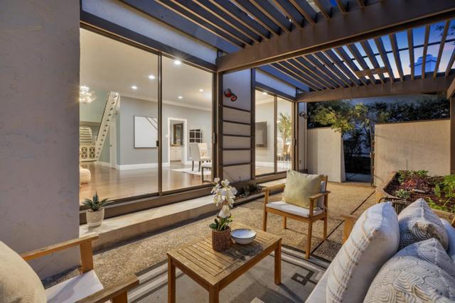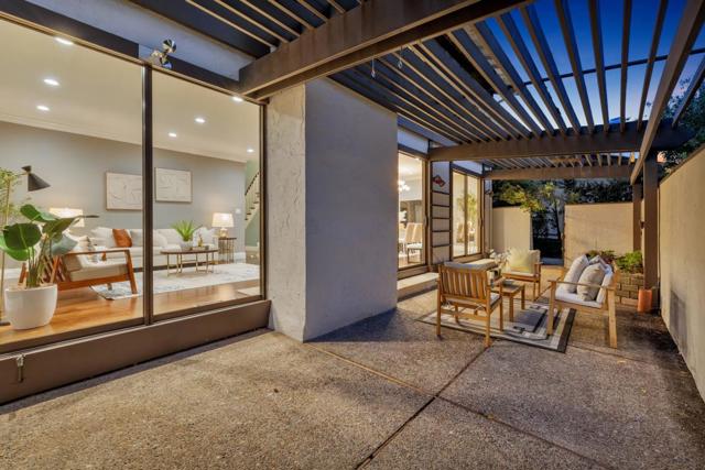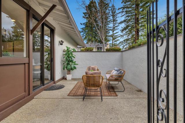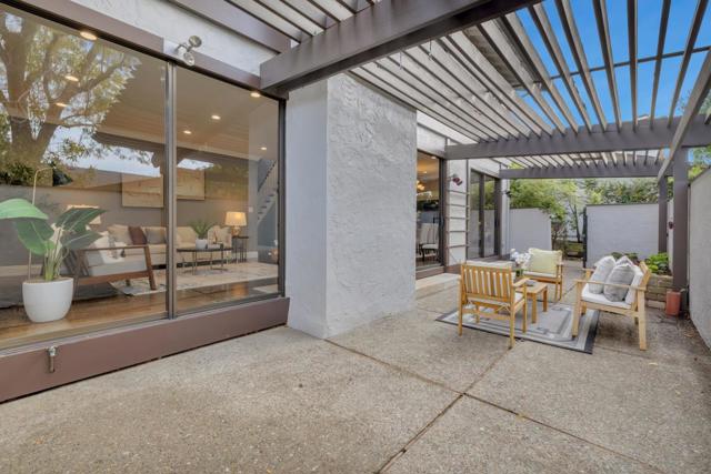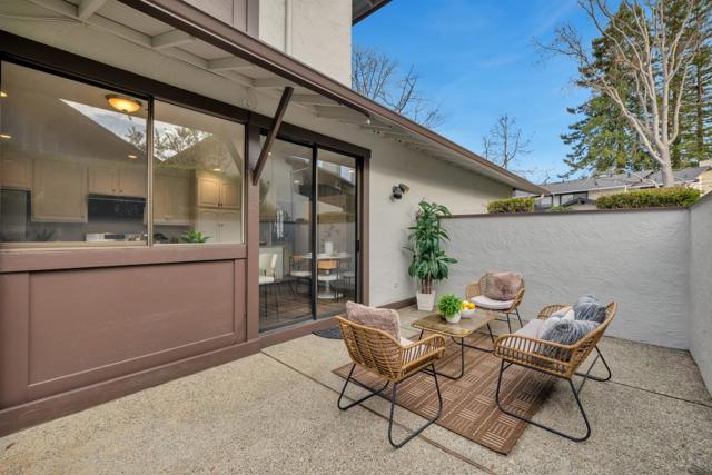 Stylish and tranquil retreat in the sought-after Sharon Oaks community of Menlo Park. This bright 3BDRM 2.5BATH home PLUS office is a two-level corner unit with only one shared wall and offers the largest floor plan in the community, with approx. 2,380 sq. ft. of updated living space filled with natural light. A private front yard leads to a spacious office that can serve as a 4th bdrm, opening to a large living rm with access to a serene backyard patio with pergola and an additional wraparound side yard, all on an approx. 2,200 sq. ft. lot. The main level features an open-concept layout with living & dining areas, a half bath & an updated kitchen with stone countertops, stainless steel appliances, bright cabinetry & a kitchen nook ideal for entertaining. Upstairs offers three generous bedrooms, including a primary suite w/ walk-in closet, laundry area, and spa-like remodeled bath with a double vanity & stall shower. Two guest bdrms share a remodeled full bath with another double vanity & shower-over-tub. Features include Brazilian chestnut wood floors, central heat & A/C & 2-car attached grg. Resort-style community amenities with two pools, guest parking & internet. Prime location near parks, golf course, TOP RATED Las Lomitas schools, Stanford, tech hubs, shopping & Hwy 280.
