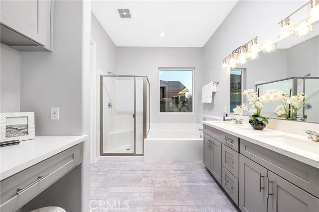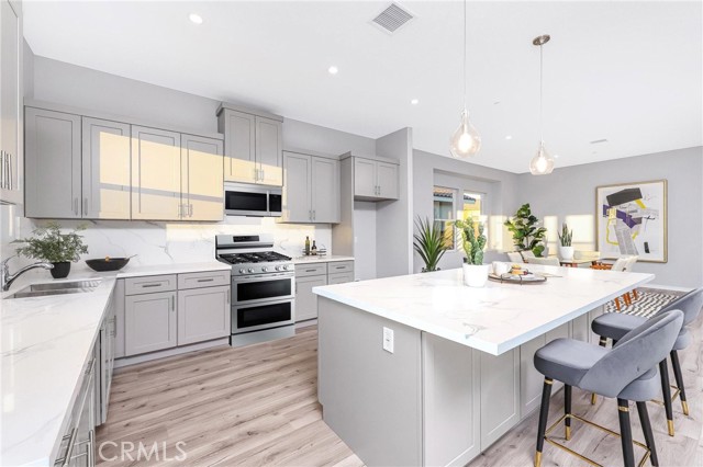 LAST ONE NOT YET SOLD--GORGEOUS BRAND NEW SINGLE STORY HOME in the Antelope Valley Country Club Area. Lovely Open Concept Floorplan. Lots of Natural Light. 10 foot Ceilings! Kitchen is a Chef's Dream with Lots of Cabinet and Counter Space. Craftsman Style Cabinets. Quartz Countertops. Huge Center Island with Breakfast Bar. 5 Burner, Dual Oven Stainless Range. Spacious Master Bedrooms with Closet as large as a small bedroom! Builtin in Closet. Master Bathroom with Dual Sinks, Quartz Countertops, Separate Tub and Shower. All Bathrooms have Quartz Countertops. Roomy Laundry Room with Utility Sink. Contemporary Finish including Plank Flooring in all Living areas, Bathrooms, Laundry and Hallways. Wide Baseboards. Attractive Light and Plumbing Fixtures. Large Under Roof Patio Cover. Low water Consumption Landscaping. Block Walls. No HOA Fees. Several Country Club Memberships are available at reasonable costs. Don't miss this Great Brand New Home!