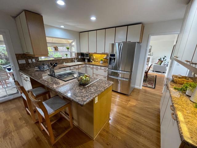 Lovingly maintained corner home in a sweet Sunnyvale neighborhood in the very nice 94086 neighborhood situated between Evelyn, Reed, & Wolfe Road with good schools & wonderful neighbors. Great location, lovely home, & a gardener's delight surrounded in springtime by flowers, prolific fruit trees, & lots of sunshine. Four bedrooms, 3 full bathrooms, hardwood floors, stainless steel, granite, double-paned windows, copper plumbing, solid wood interior doors, newer roof, modern bathrooms, & kitchen. Professional photos on the way. Spacious outdoor living area protected by a large pergola and overlooking a large sunny play area and/or garden area. The yard perimeter is host to many prolific fruit trees: lemon, orange, peach, tangerine, quince, quava, fig, avocado, & apricot tree. The rear yard has long been a very productive vegetable garden. In season, the side yard blooms as a magnificent rose garden. It wasn't uncommon to find neighbors taking their family pictures in front of the lush, beautiful front yard. Located in the Heart of Silicon Valley, walking distance to the Apple Wolfe Campus @ Wolfe & Arques. Very close proximity to the Caltrain station, Murphy Avenue, and Downtown for restaurants, services & shopping, and an easy commute to Google, Apple, & major employers.