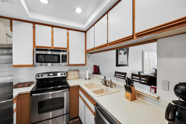 Fabulous Location.. View of the lakes, mountains & fairways, located on Lagos#3, you can enjoy living in this beautiful, super clean 1 bedroom, 2 full bath condo. Owners are meticulous in maintaining this condo. Super nice Tile thru-out, Shutters, Ceiling Fans, New Appliance, turnkey furnished. Has Glass Storm Drain front door, Extended back patio area.. Close to a pool/spa perfect to unwind. Single electric garage, New stackable washer/dryer in unit. This condo is Immaculate with excellent rental history.. Located at The Desert Princess Country Club! The Desert Princess has an affordable 27-hole PGA Championship golf course, no Tee-time lotteries, no initiation fees, rated among the best in the valley by GOLF DIGEST. HOA includes Highspeed wifi, cable TV, Tennis Courts, Pickleball courts, Racquetball courts, Indoor fitness Center, Ping Pong, Bocce Ball & basketball.. 34 pools/spas thru-out our community! The club house offers fabulous food.. Great ambience! This quiet community is away from the noise yet minutes from everything that is in Palm Springs,, restaurants, shopping, casinos, an international airport, the Tramway, Art Museums, Theaters, Acrisure Arena, hiking trails and the Street Fair! Easy to showLand lease expires 2069. Please read private remarks.