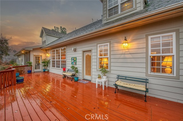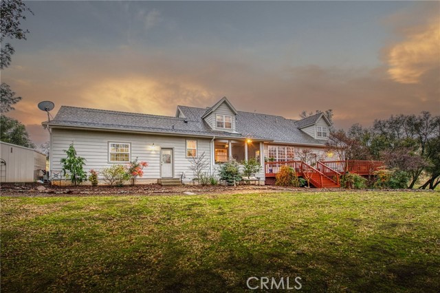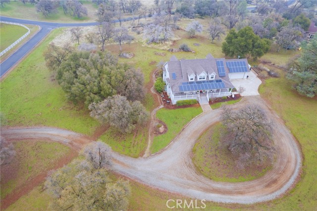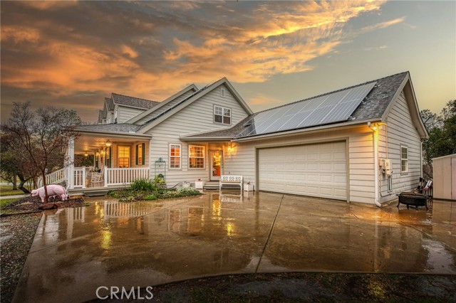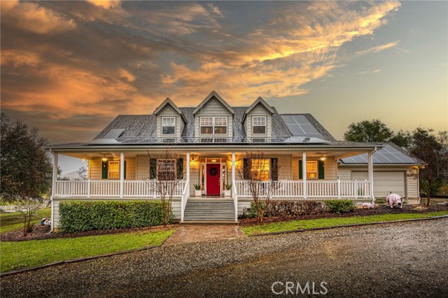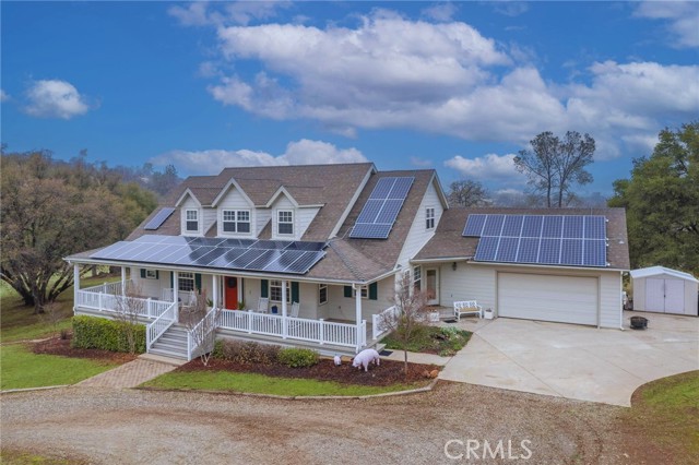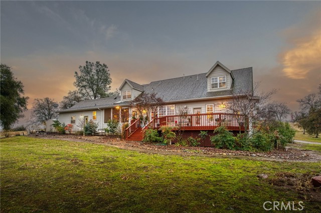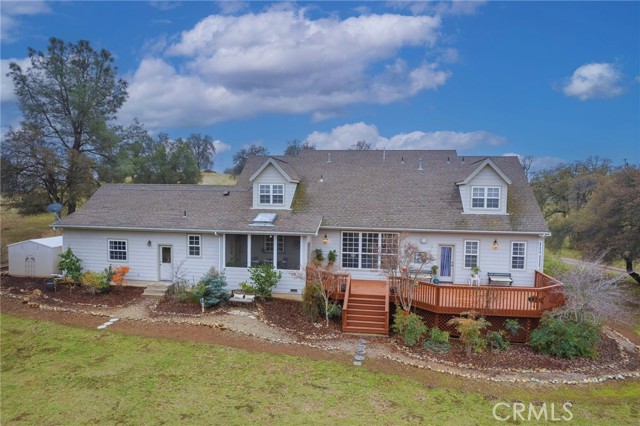 A custom ranch home, with 3,337 beautifully maintained square feet, sits on a peaceful 3.38-acre lot in the picturesque Whispering Oaks West community, including fully owned net-zero'' solar. The home features 3 bedrooms and 3.5 bathrooms, with the primary suite conveniently located on the ground floor, creating a private retreat for relaxation, and direct access to panoramic views from the rear redwood deck. Enjoy gatherings in the elegant formal dining room or spend time in the sunroom, an ideal space for outdoor dining and taking in the natural surroundings. The oversized front covered porch invites you to unwind, and the newly constructed back deck offers a fresh, functional outdoor space. An additional room on the ground floor provides flexibility for an office, hobby space, or a 4th bedroom. Upstairs, you'll find a cozy loft with a built-in daybed, two generously sized guest rooms, and a convenient walk-in storage area. The home is equipped with two active wells, including one installed in 2024. For added peace of mind, pest inspection has been completed and certified. The community enhances the lifestyle with scenic walking trails, fire pits, and a private pond perfect for swimming, fishing, or kayaking. A truly welcoming place to call home.