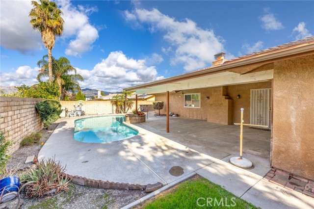 A Home for All Seasons! This inviting property offers four spacious bedrooms and two bathrooms, along with a large living room and a comfortable family room featuring a classic brick fireplace. The kitchen is generously sized, offering abundant counter space and storage, and flows seamlessly into the dining area with plenty of room for a china cabinet or hutch. French doors enhance both the family room and the primary bedroom, providing natural light and easy access to the outdoors. Step into the backyard to enjoy a large covered patio, sparkling pool, and relaxing spa—perfect for entertaining year-round. Additional highlights include RV access. With a little updating, this home presents an excellent opportunity and a smart investment.