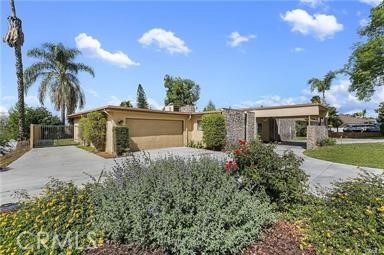 Highly sought after Mid Century Modern home located on a quiet, tree lined street. This corner lot has a grand hotel style circular driveway with porte-cochere drive through entrance. Newly Installed solar panels. New Owner must take over Solar Loan, Property being sold AS IS.